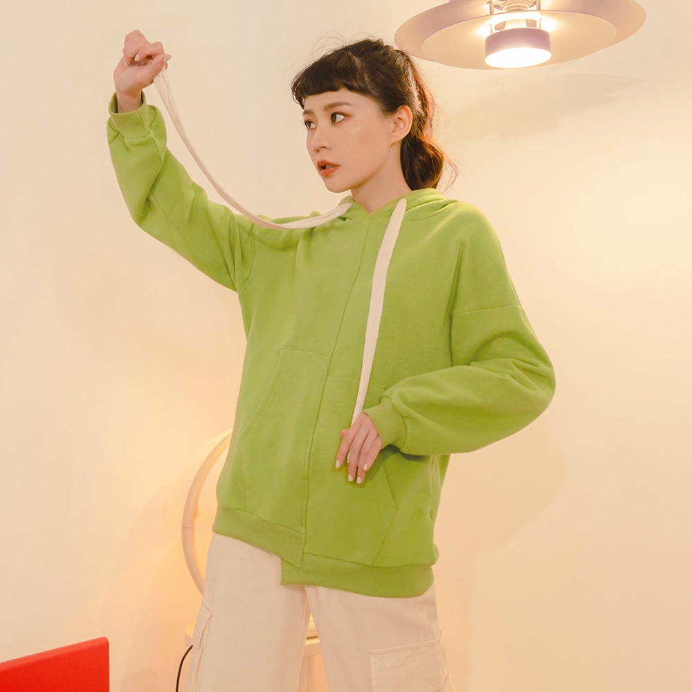 OB嚴選 玩轉百tee.不對稱下襬內刷毛連帽大學T 《AB17567》大尺碼/現貨/女裝