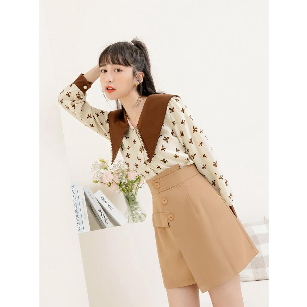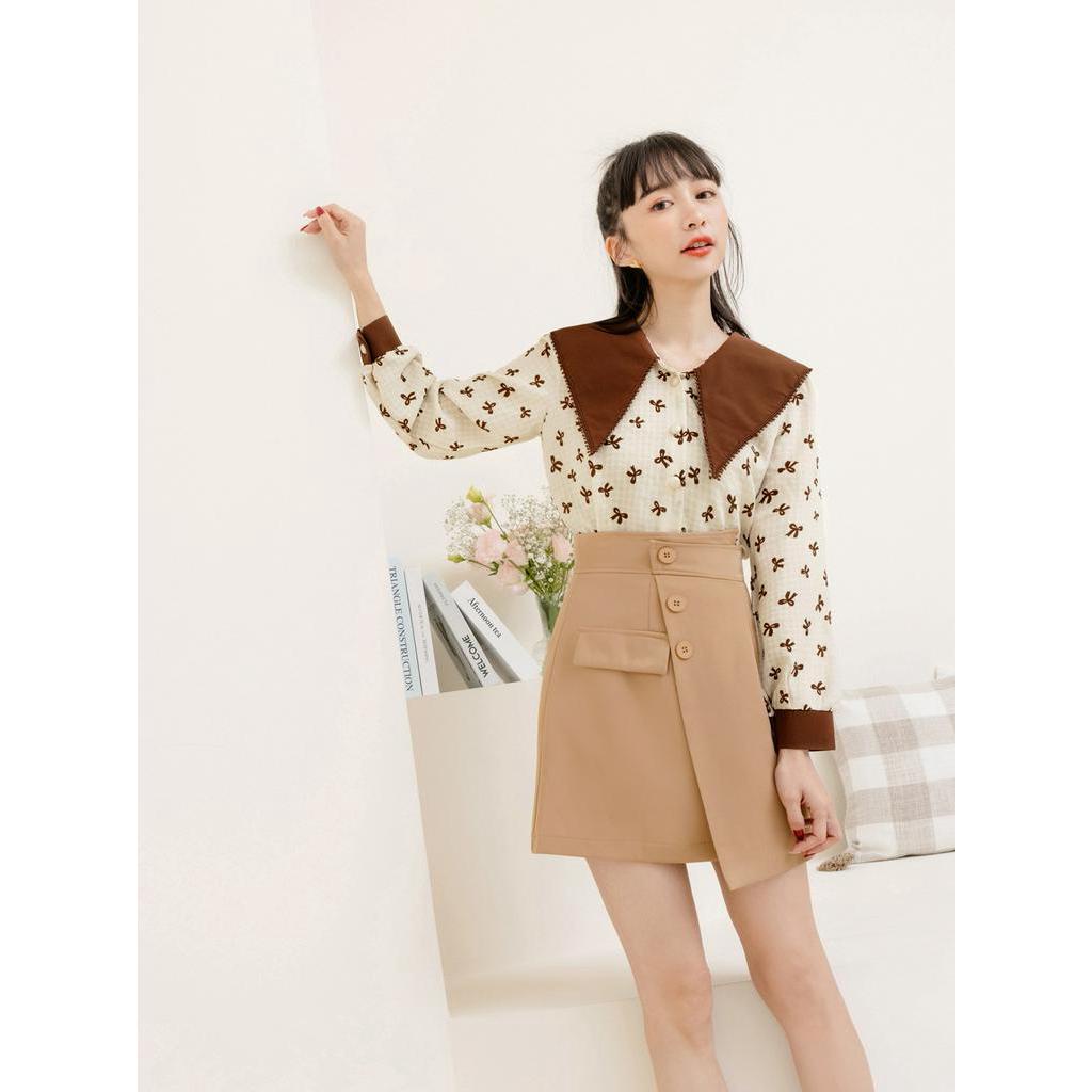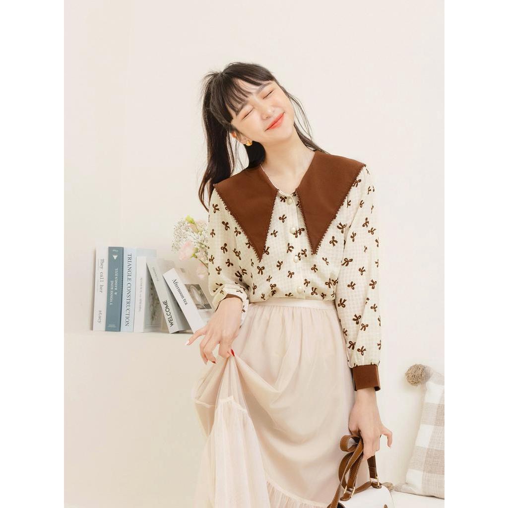 OB嚴選 花邊大領片蝴蝶結印花紋理開襟上衣 《AB18200》大尺碼/現貨/女裝