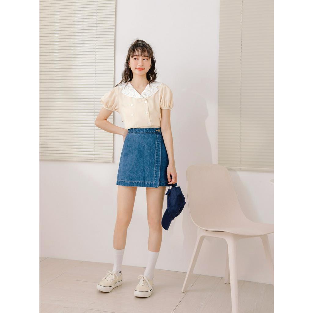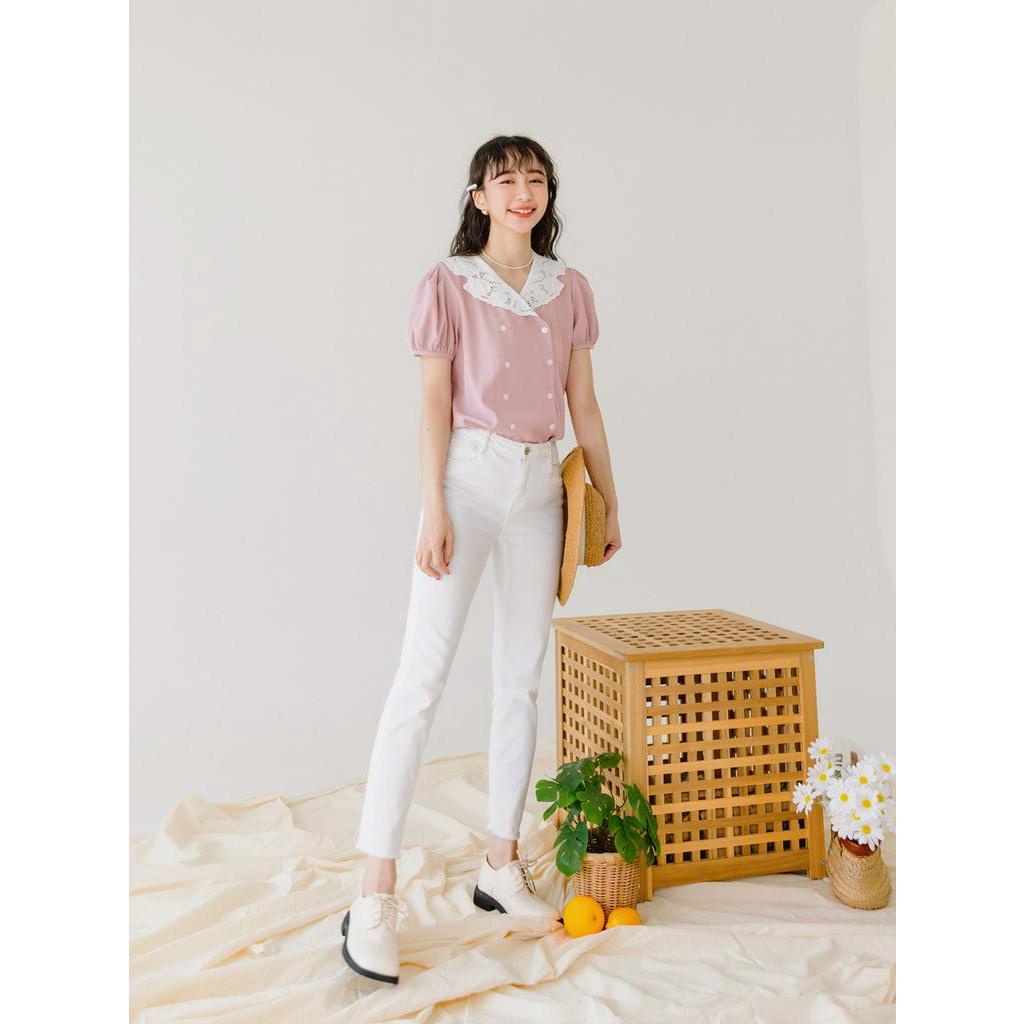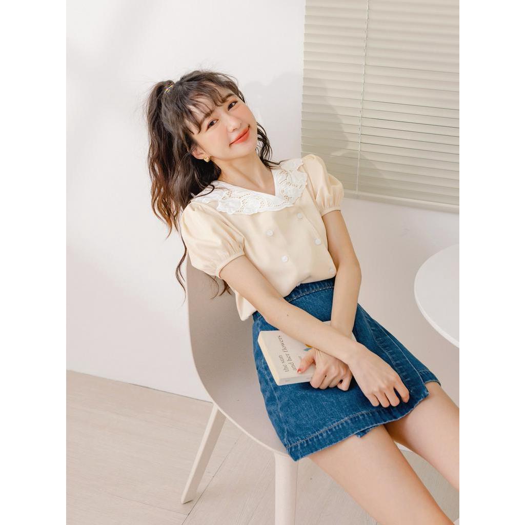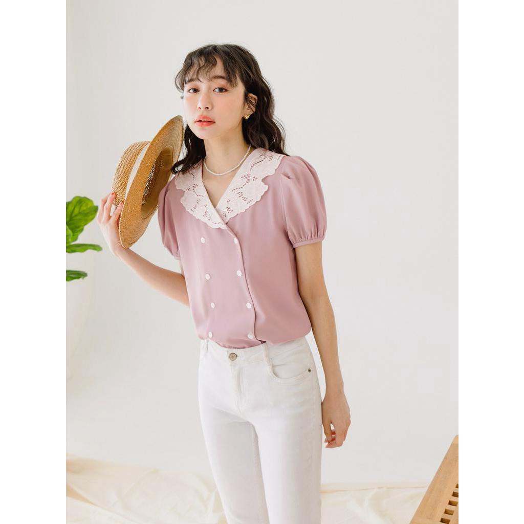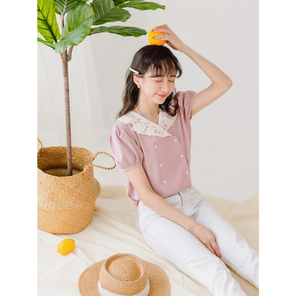 OB嚴選 小V臉.蕾絲V領不易皺開襟拋袖上衣 《AB18373》大尺碼/現貨/女裝