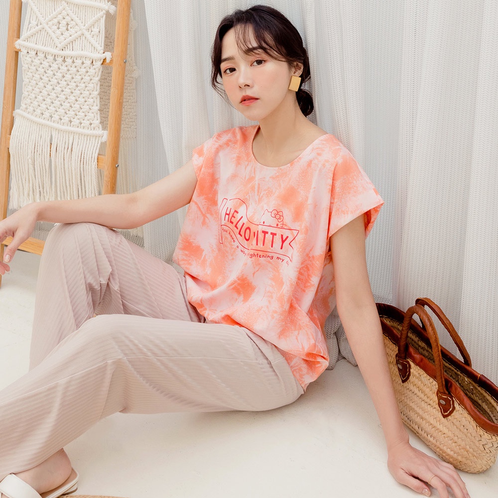 OB嚴選 KITTY繽紛盛夏.唯美渲染印花打摺飛鼠袖上衣 《KB1373》現貨/大尺碼/女裝