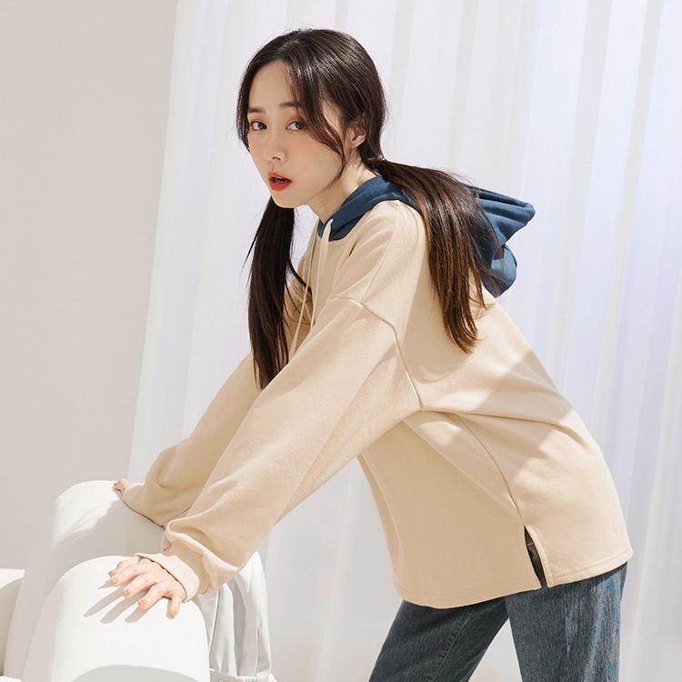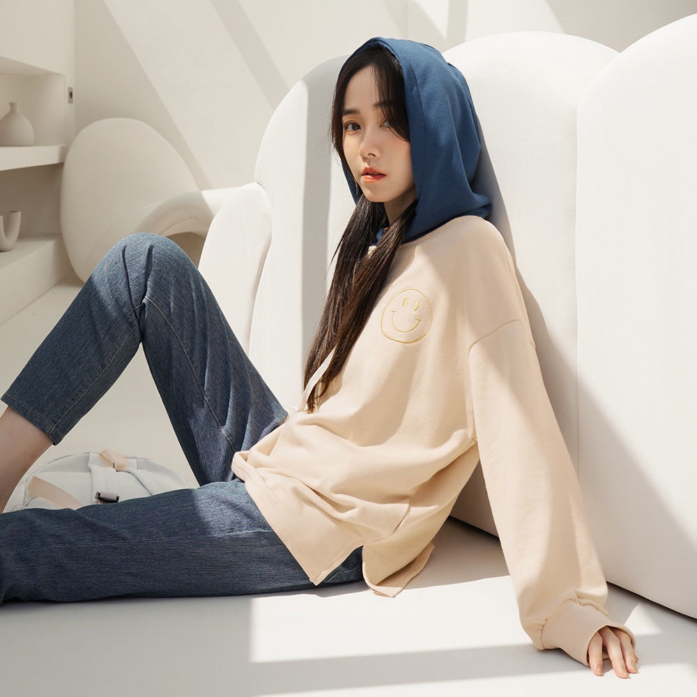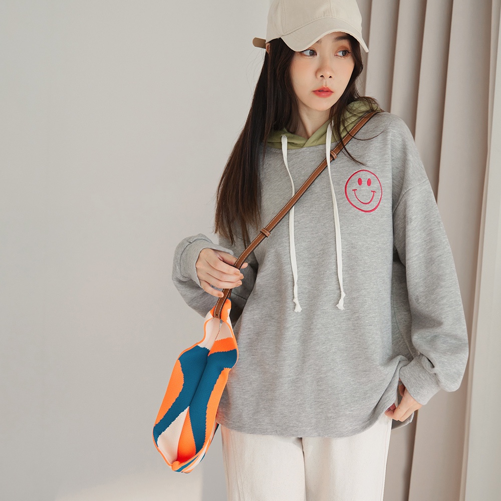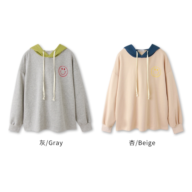 OB嚴選 棉質笑臉刺繡撞色連帽上衣 《AB18998》大尺碼/現貨/女裝