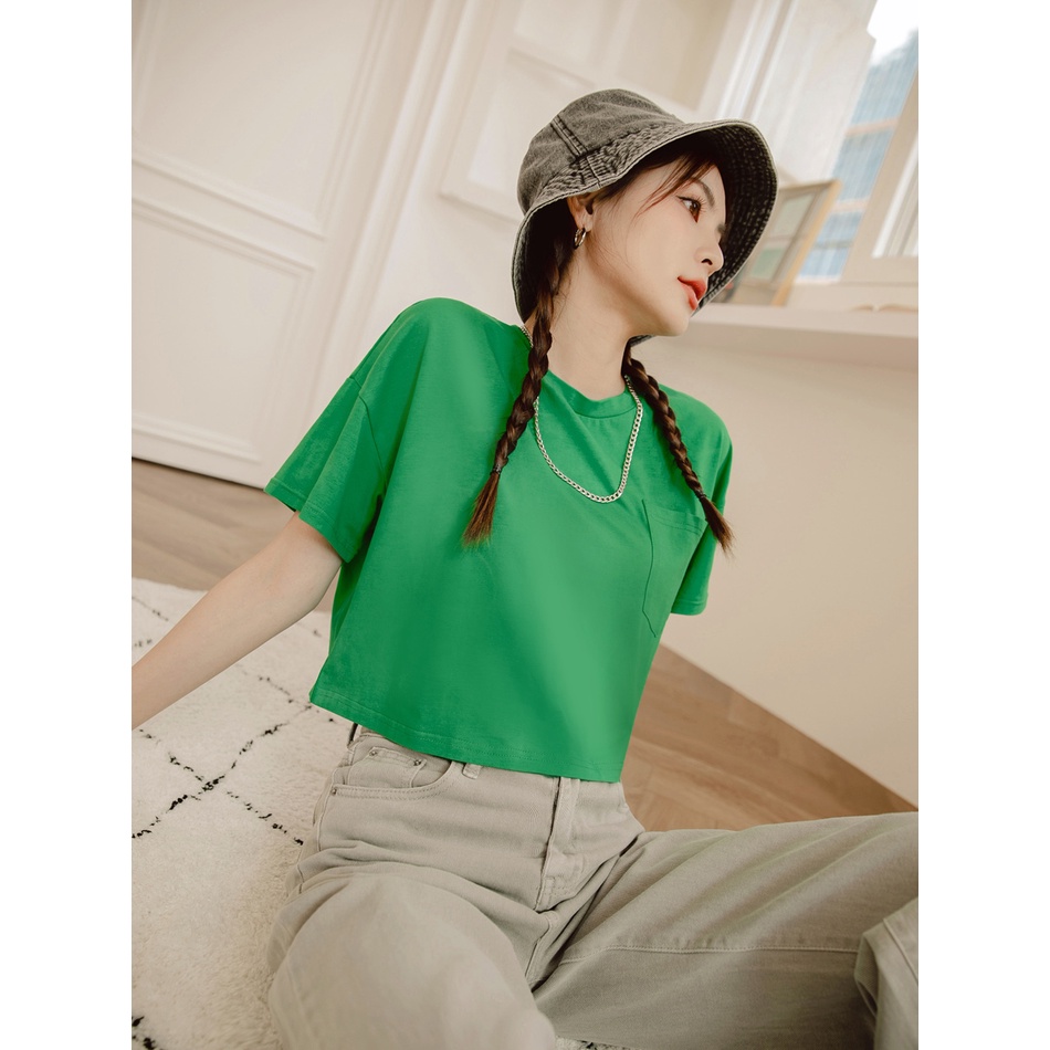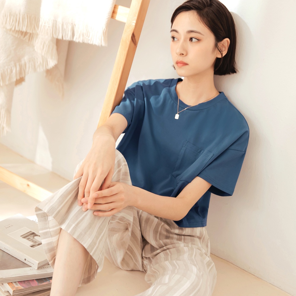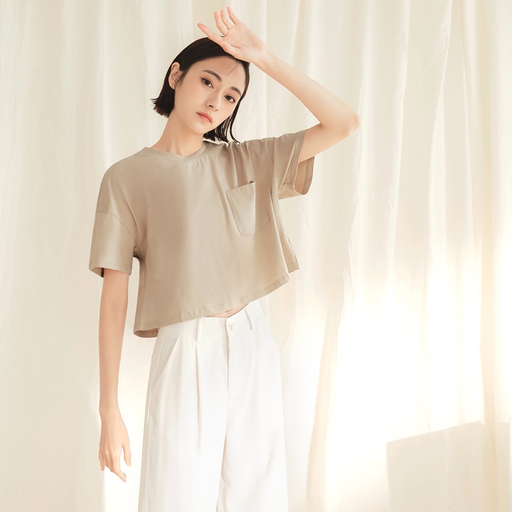 OB嚴選 多色系.舒涼絲光棉高彈寬鬆短版口袋T/上衣 《AB17467》大尺碼/現貨/女裝