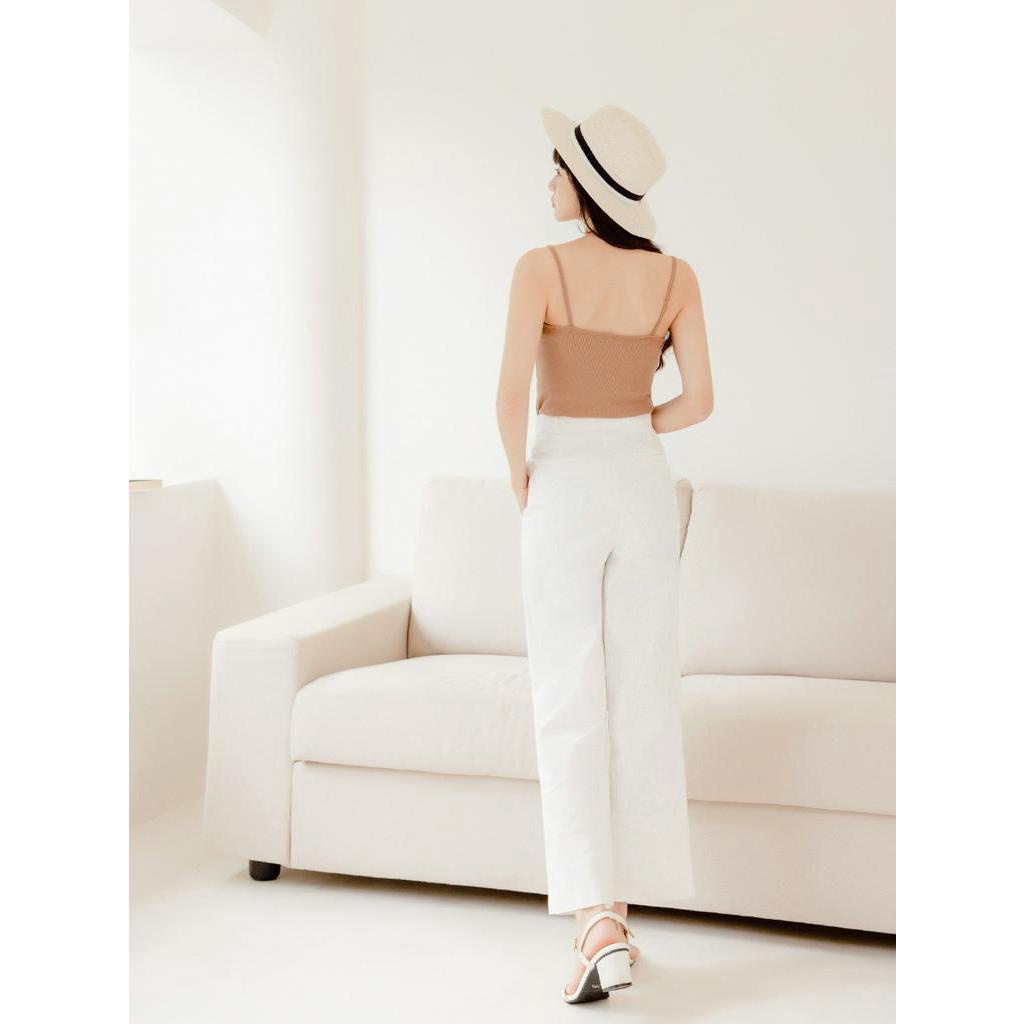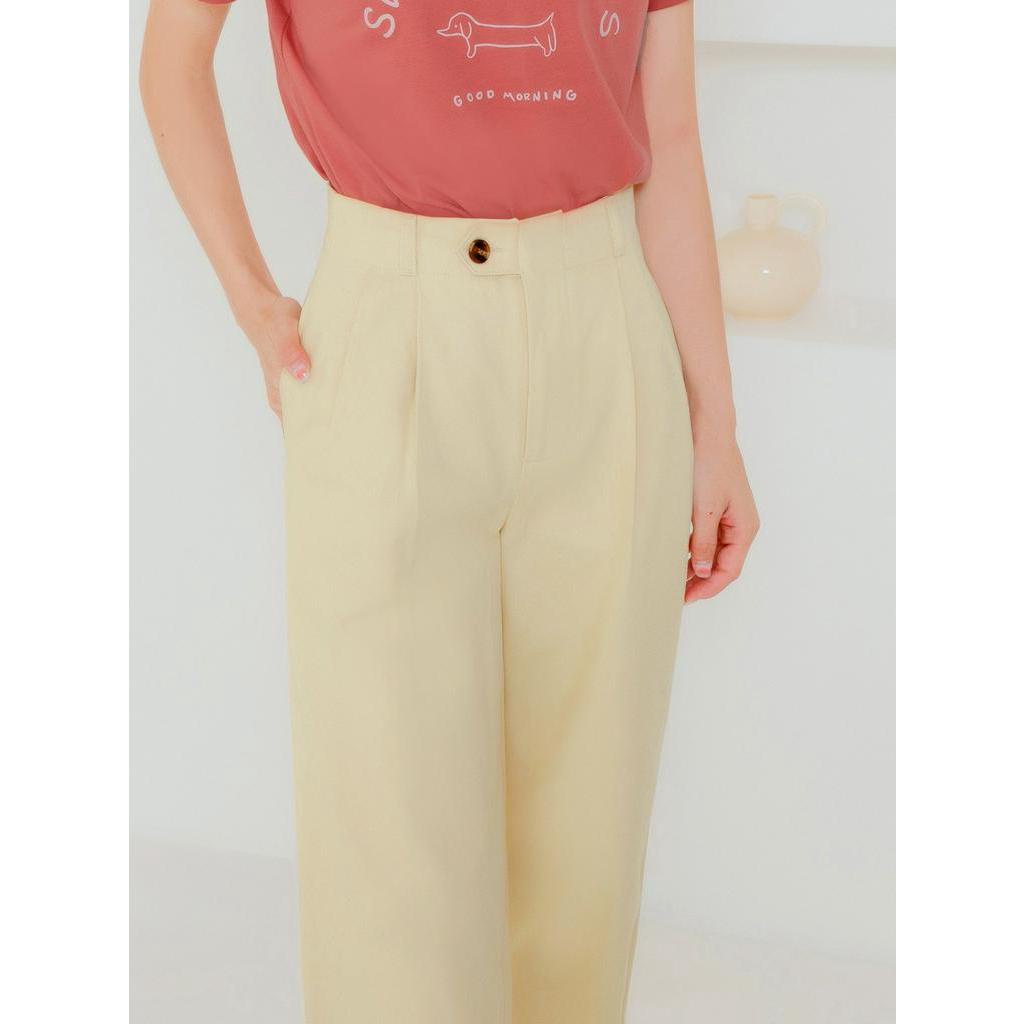 OB嚴選 純棉琥珀釦車褶線直筒寬褲 《BA6818》大尺碼/現貨/女裝