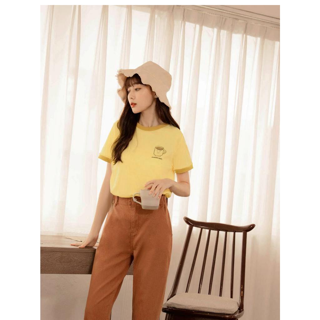 OB嚴選 咖啡廳家族.圓領配色美式先生印花短T 《KG1282》大尺碼/現貨/女裝