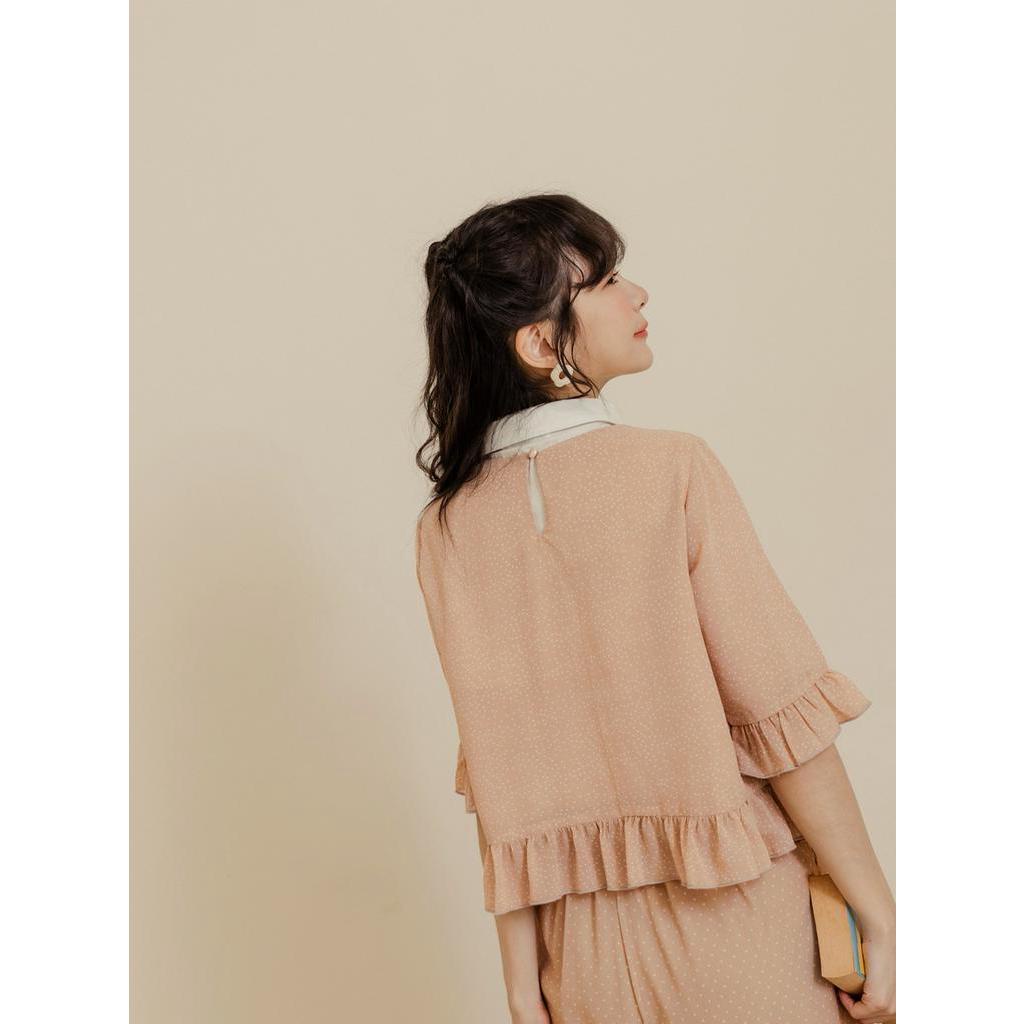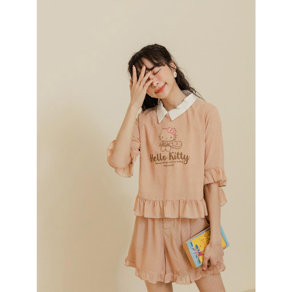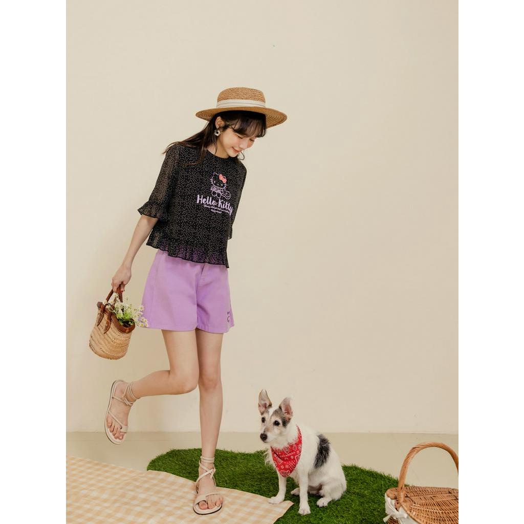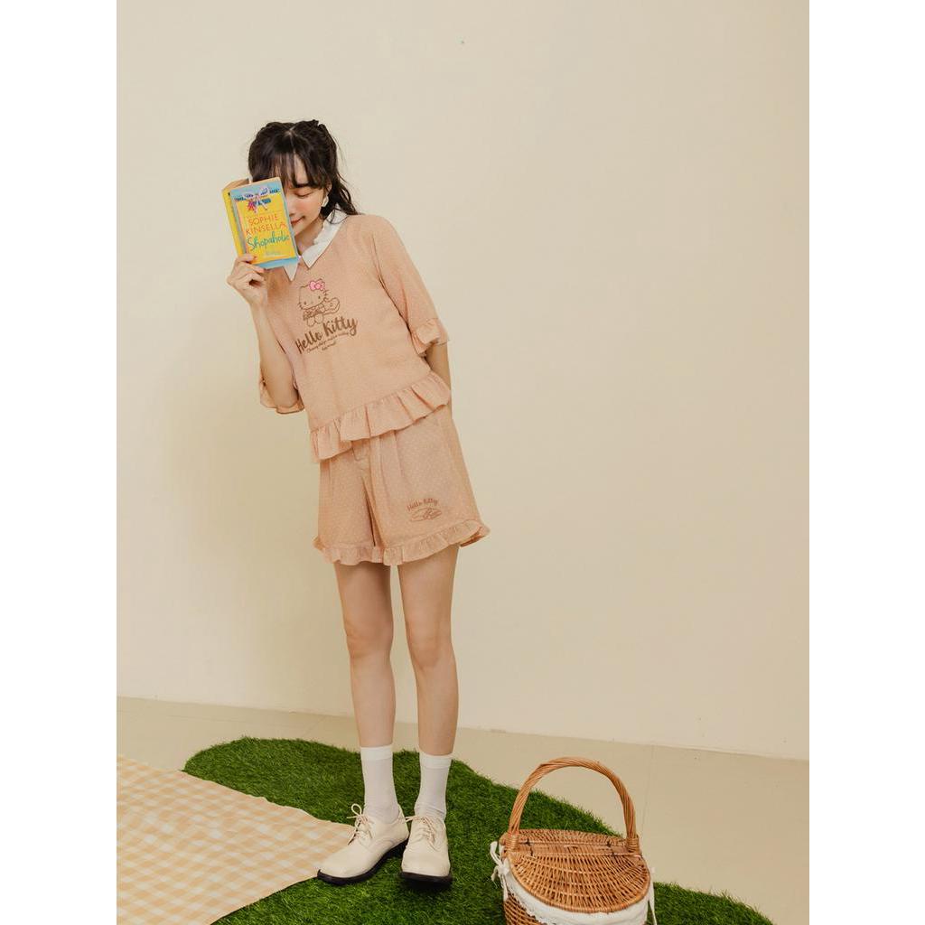 OB嚴選 KITTY 野餐系列.透膚雪紡點點荷葉邊短版上衣 《KB1475》現貨/大尺碼/女裝