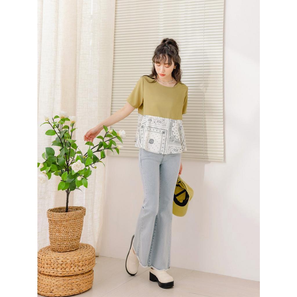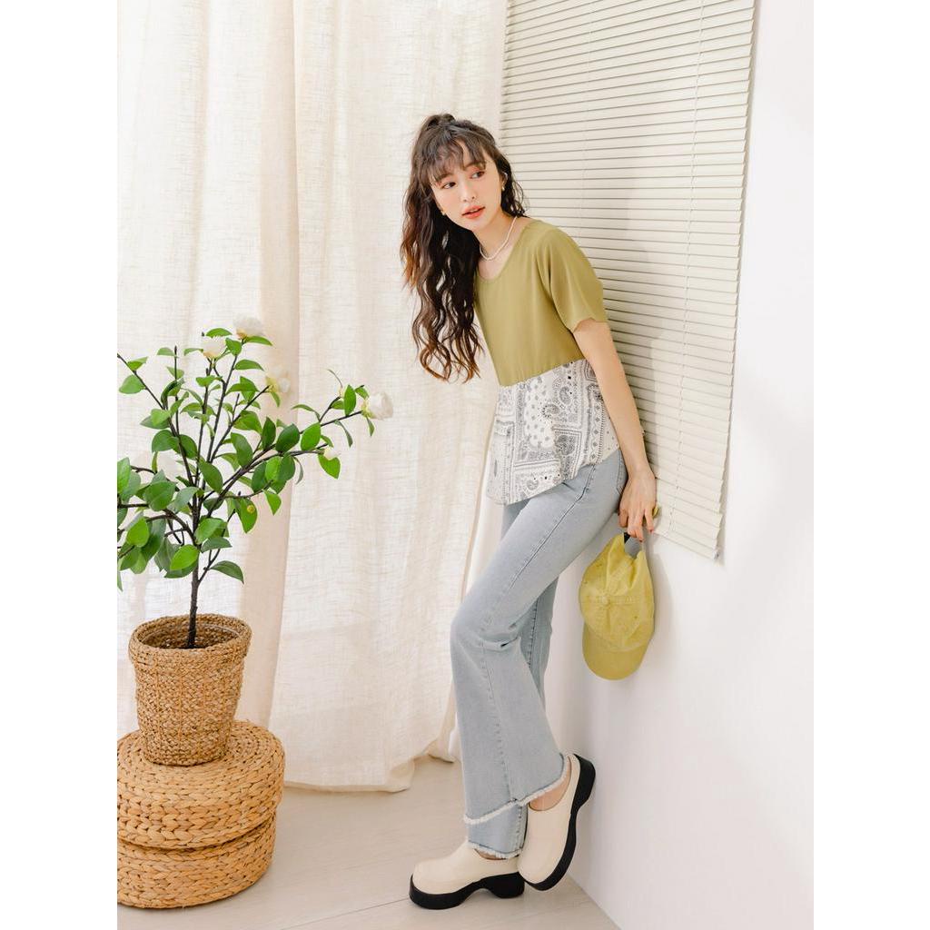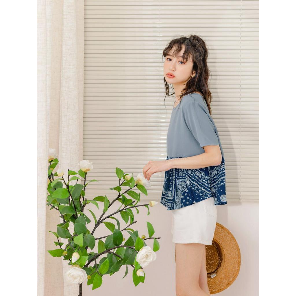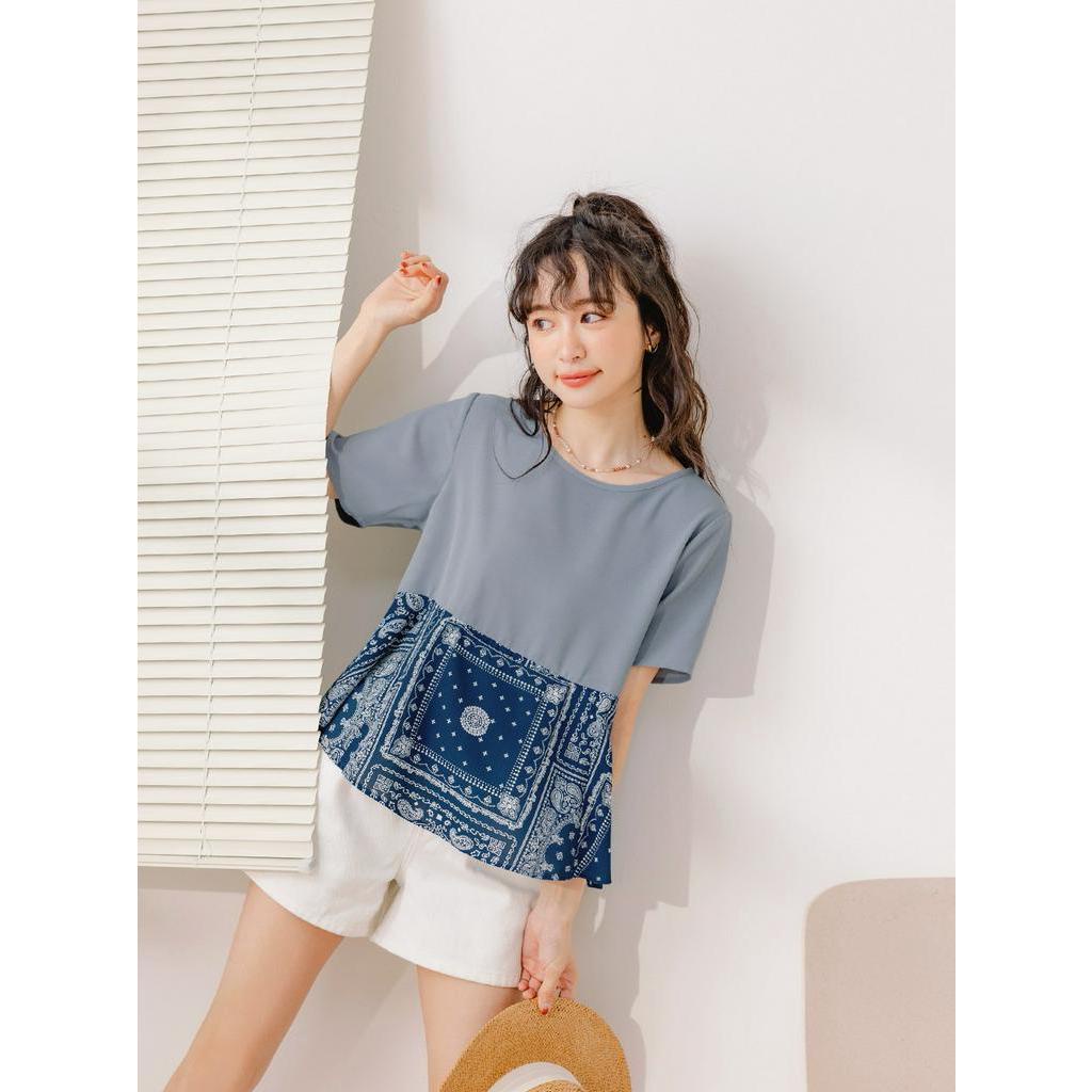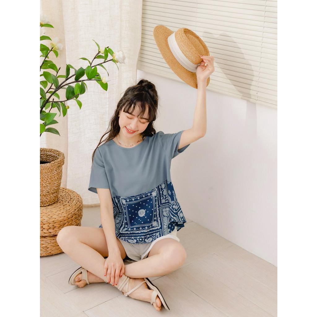 OB嚴選 圖騰印花拼接口袋A字上衣 《AB18270》大尺碼/現貨/女裝