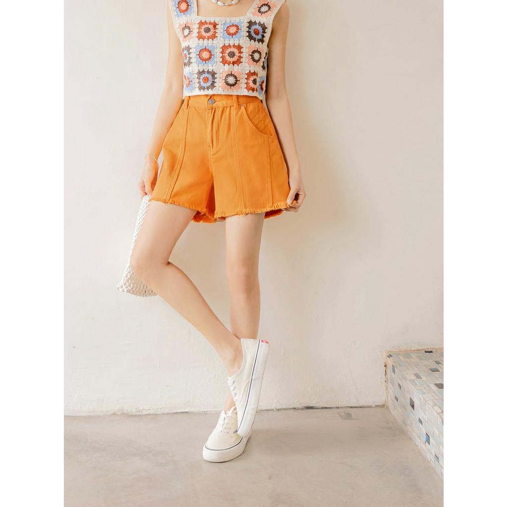 OB嚴選 純棉素色裝飾線抽鬚短褲 《BA7141》大尺碼/現貨/女裝