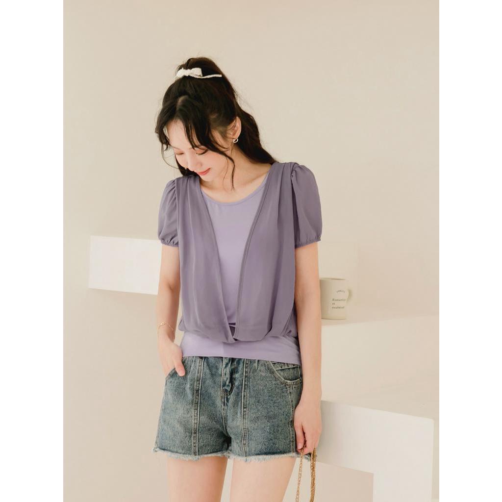 OB嚴選 假兩件交錯造型拼接拋袖上衣 《AB17077》大尺碼/現貨/女裝