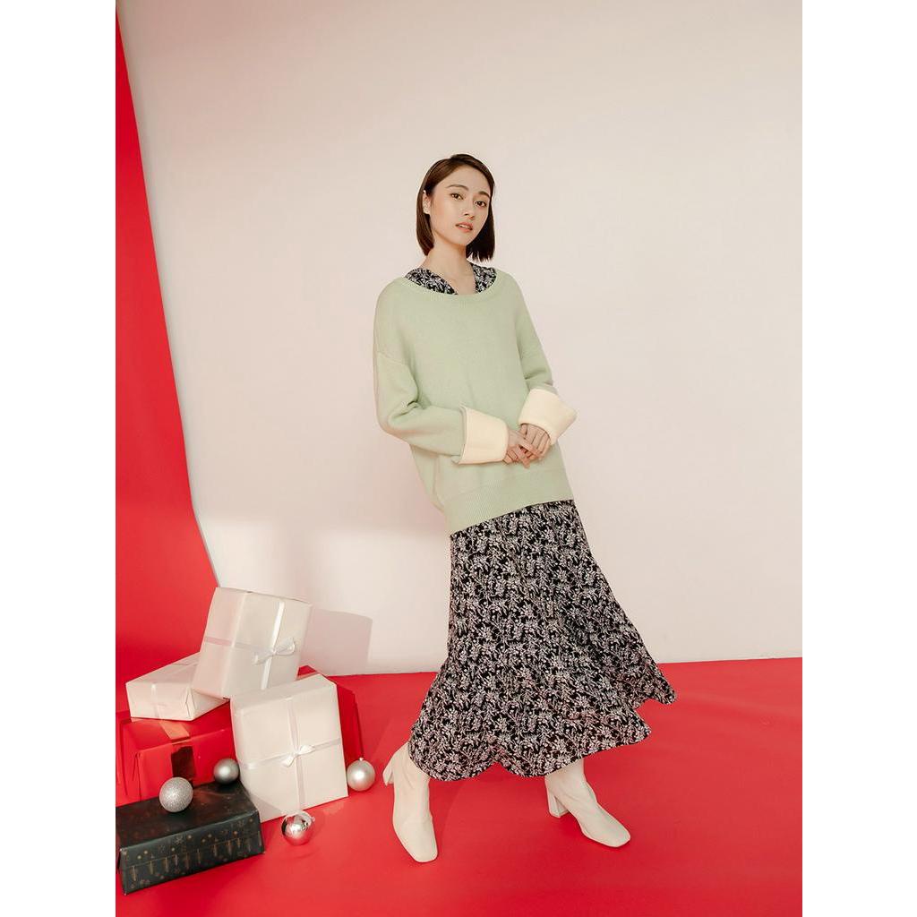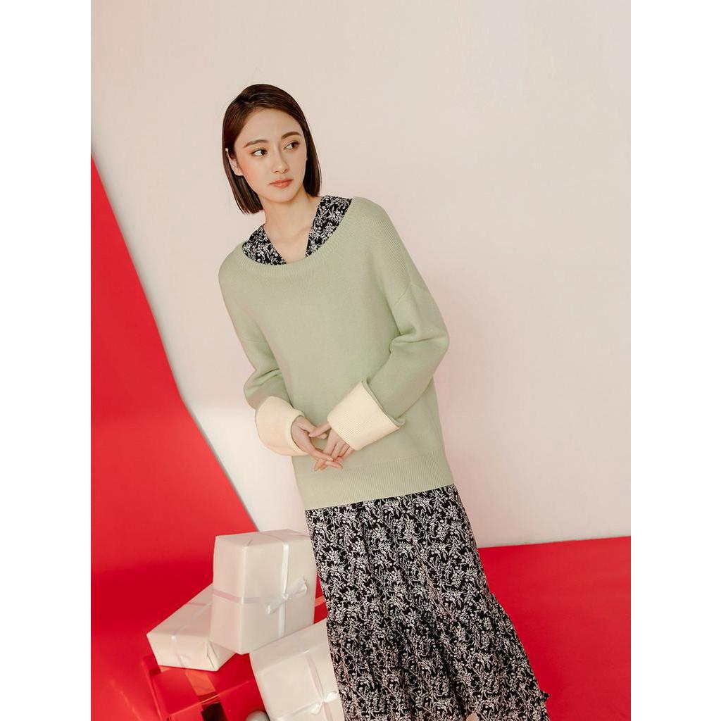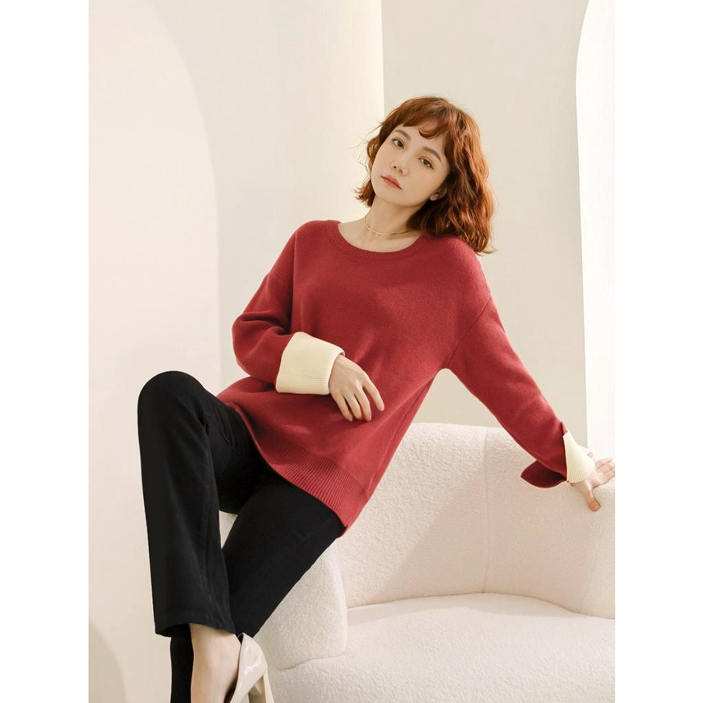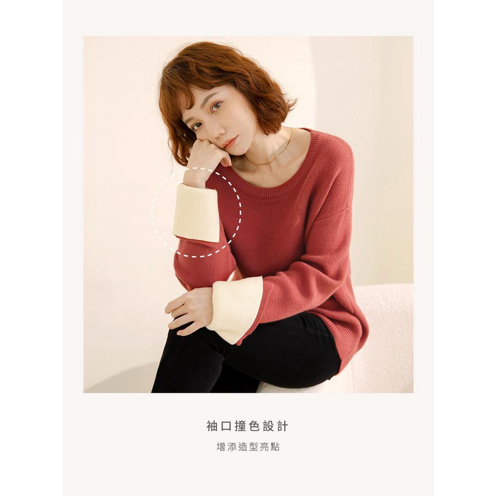 OB嚴選 包芯紗圓領袖口反折撞色毛衣 《FA2592》大尺碼/現貨/女裝