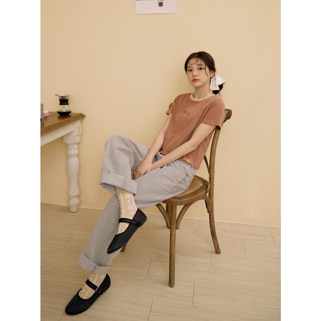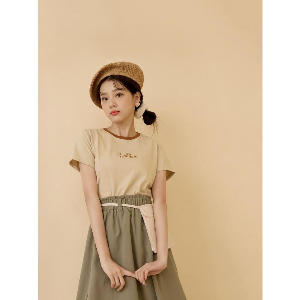 OB嚴選 咖啡廳家族.咖啡豆刺繡撞色滾邊短版TEE 《IG0014》大尺碼/現貨/女裝