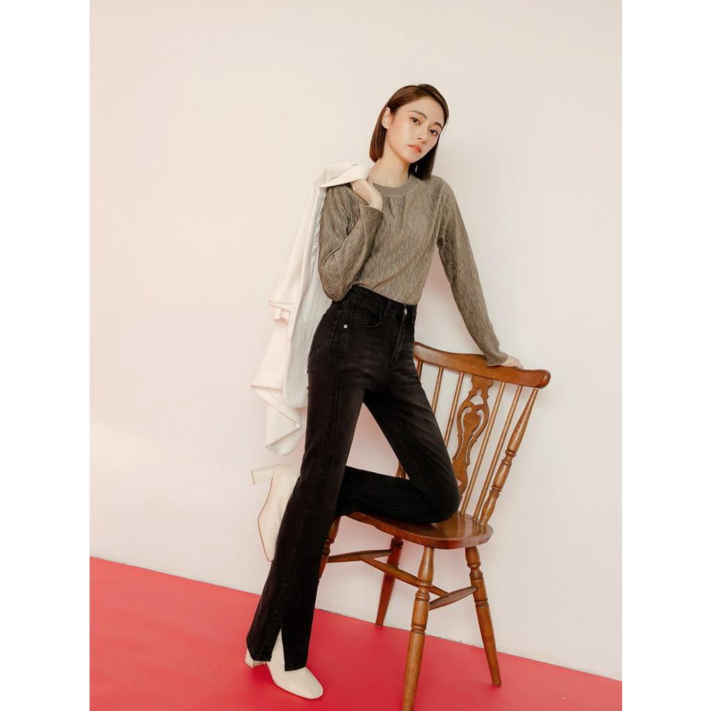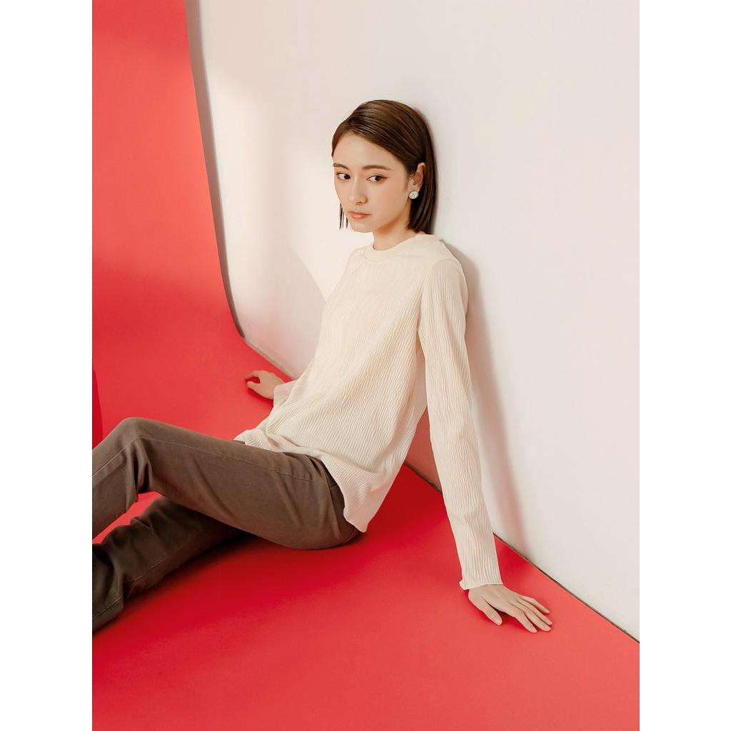 OB嚴選 立體紋理圓領微光澤長袖上衣 《AB18104》大尺碼/現貨/女裝