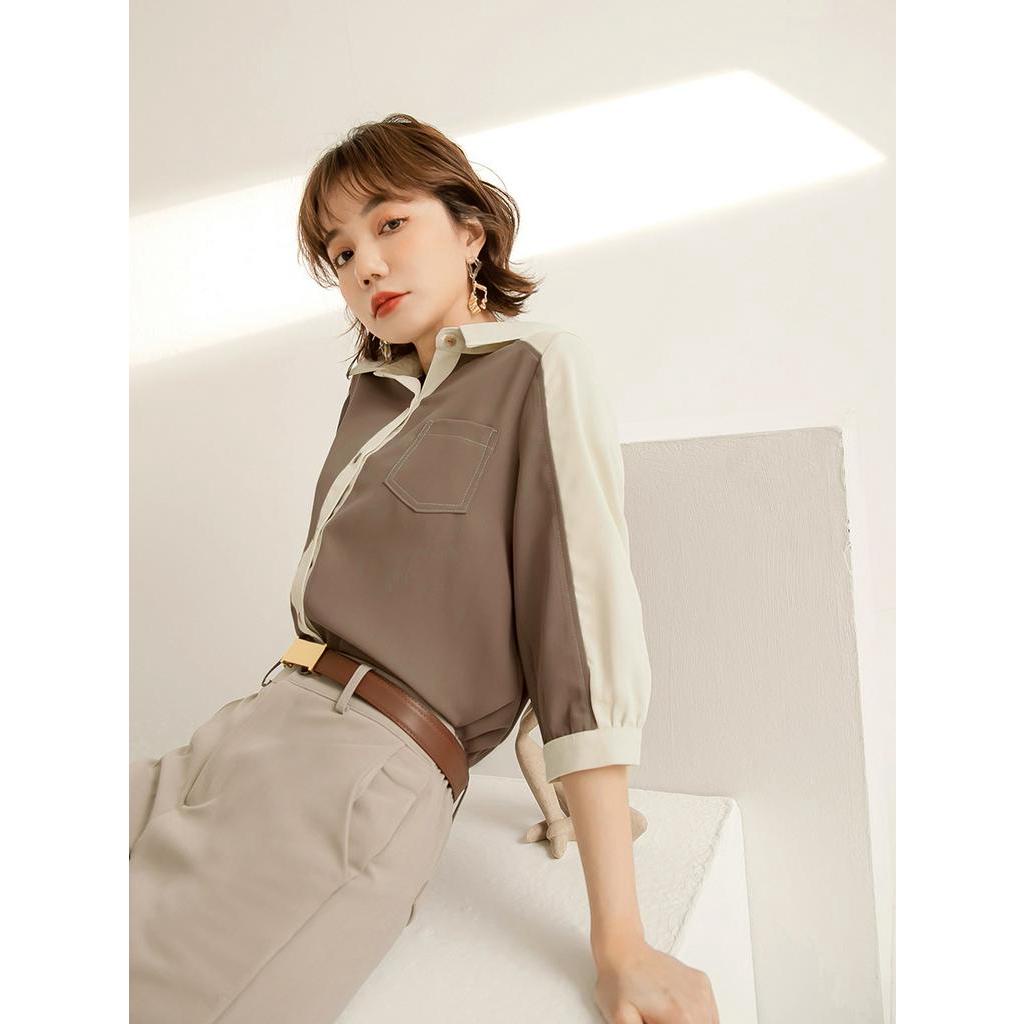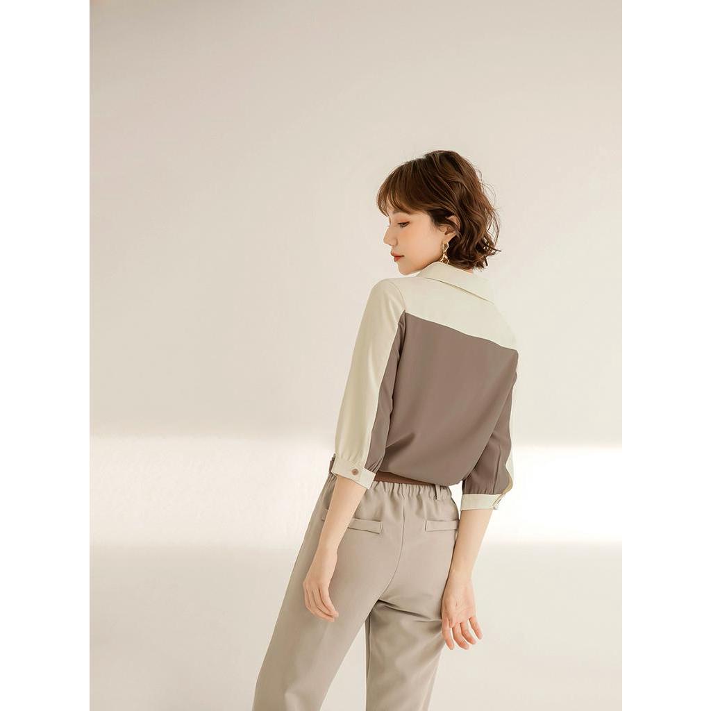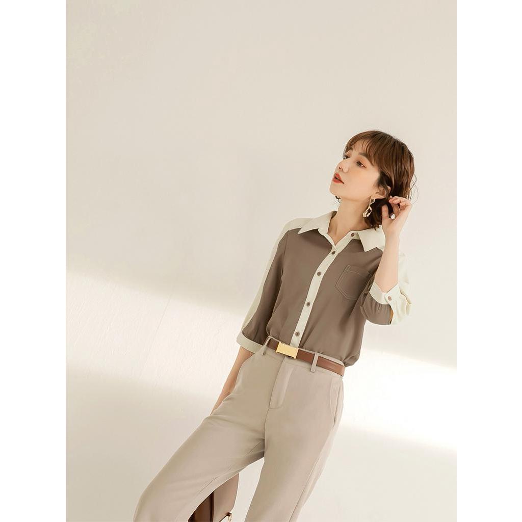 OB嚴選 不易皺翻領開襟配色上衣 《AB17635》大尺碼/現貨/女裝