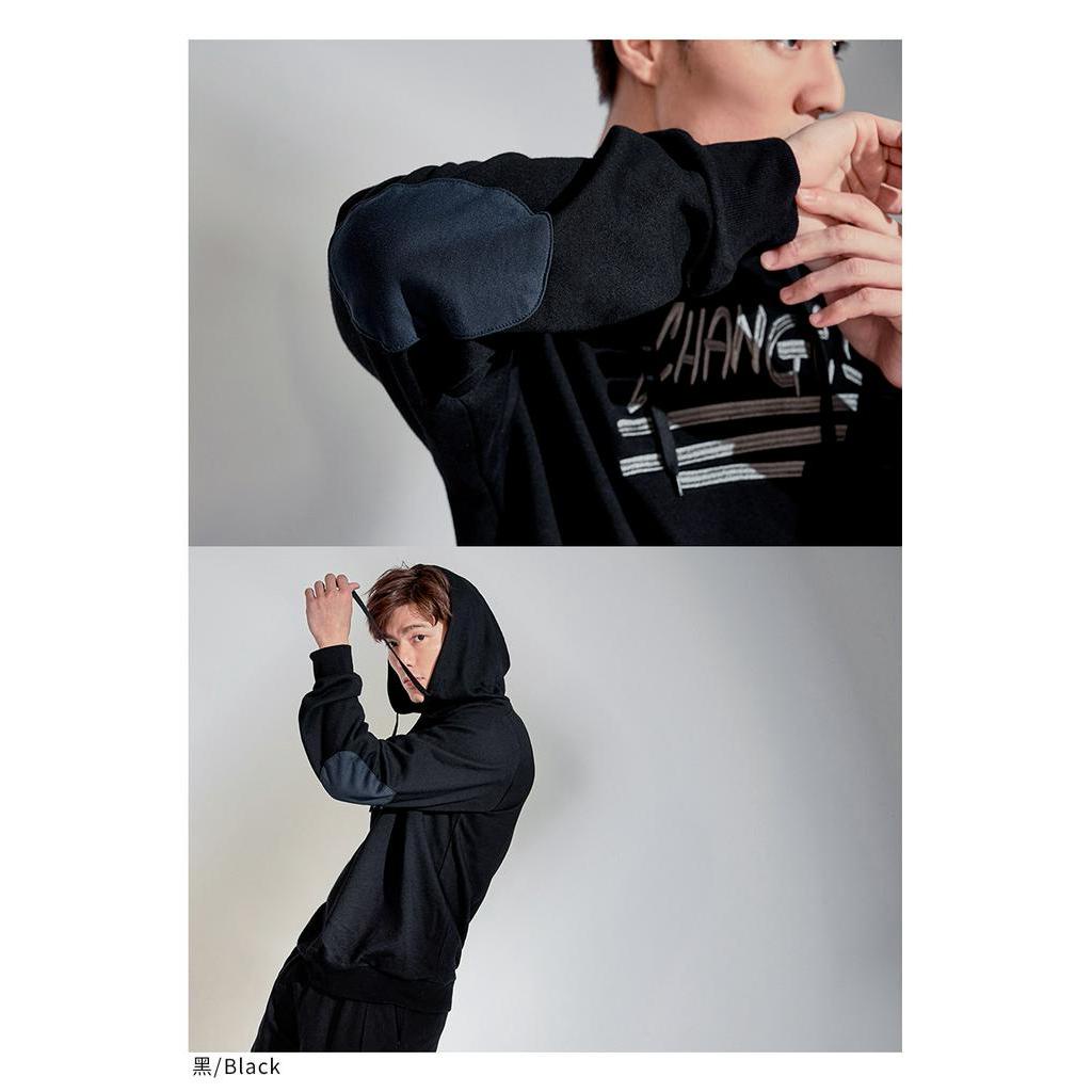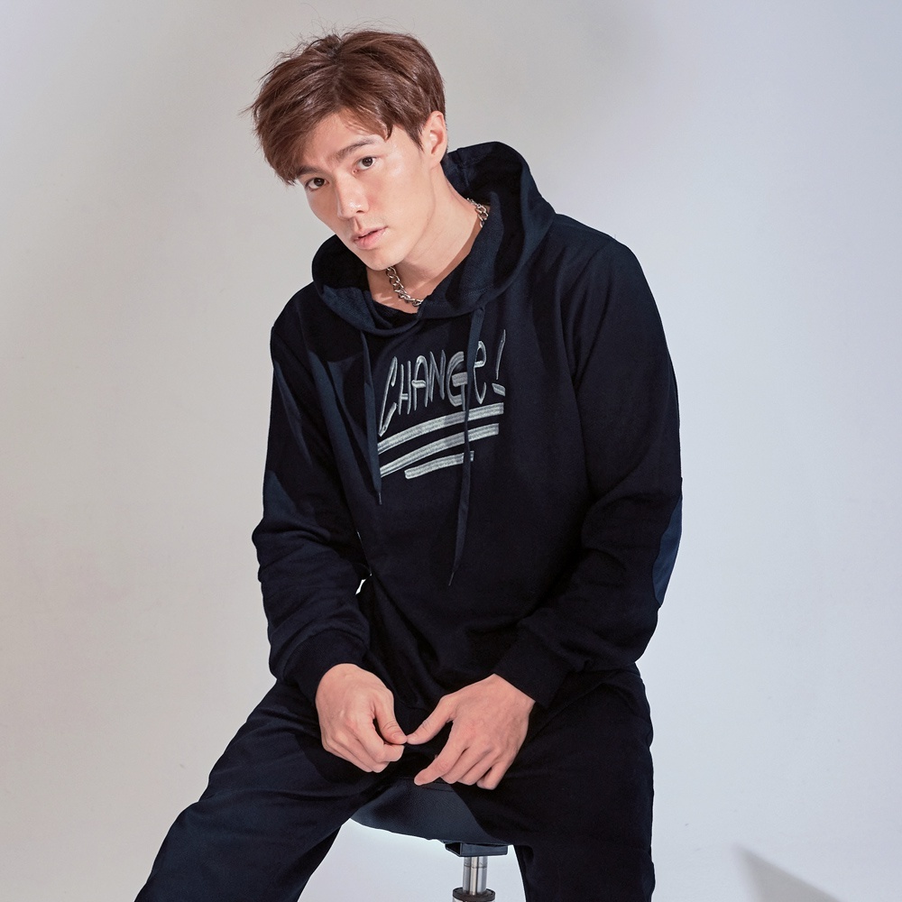 OB嚴選 素色文字刺繡袖軸補丁長袖帽T 《KL1163》男裝/現貨/大尺碼
