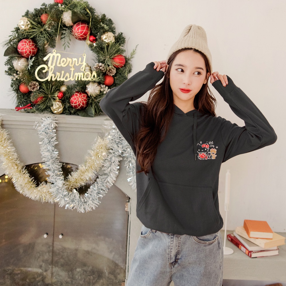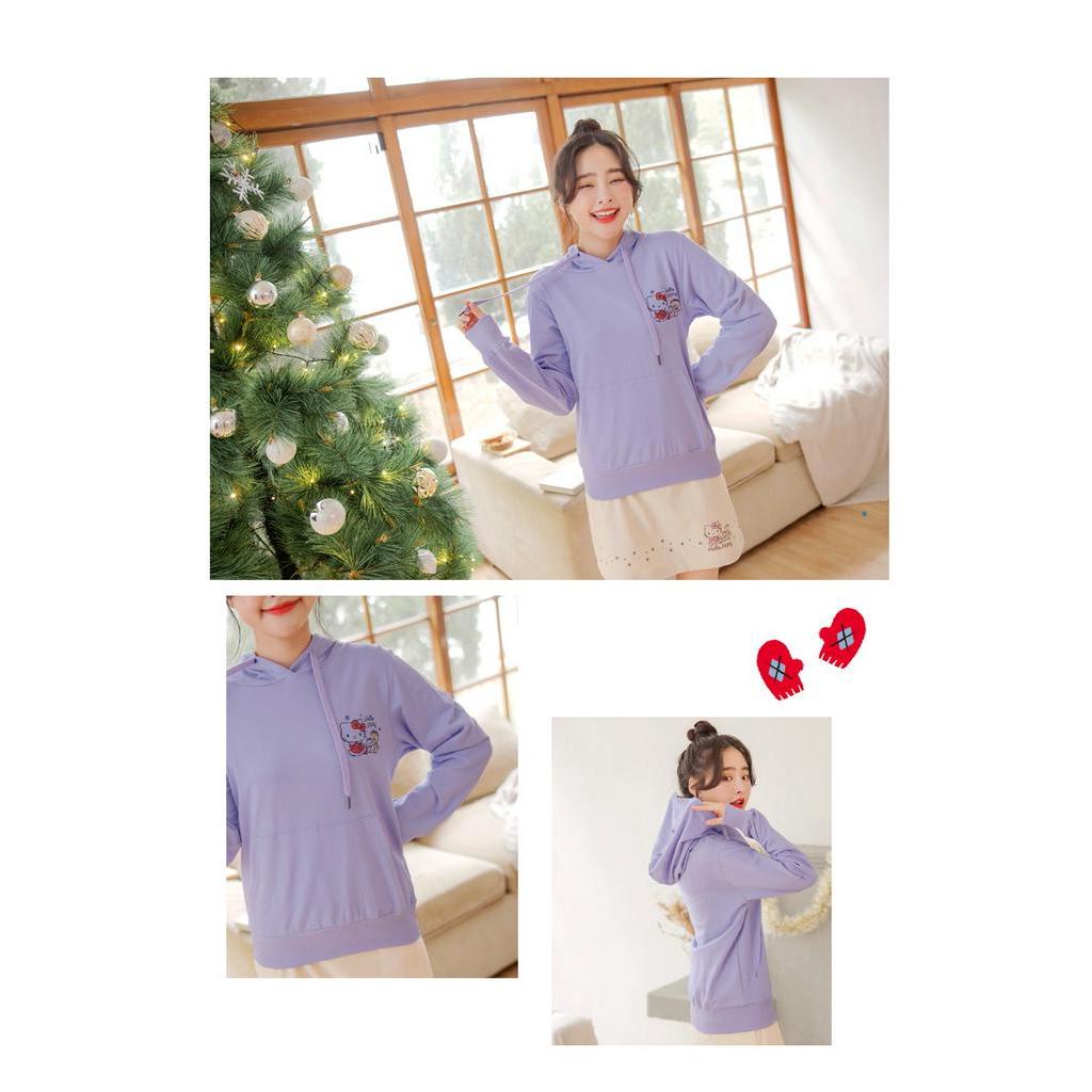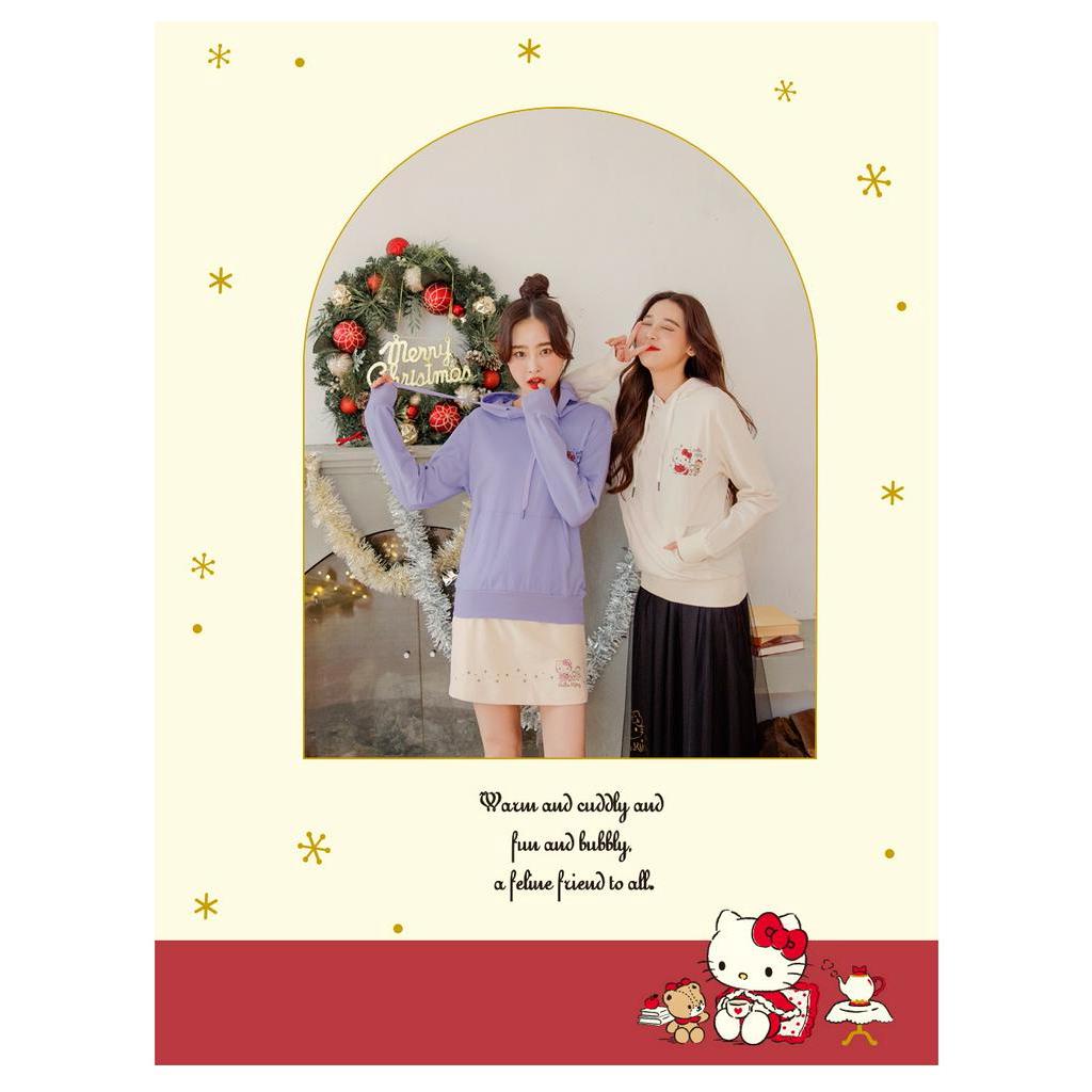 OB嚴選 KITTY聖誕系列~純棉袋鼠口袋連帽抽繩胸前印圖上衣 《KB1147》現貨/大尺碼/女裝