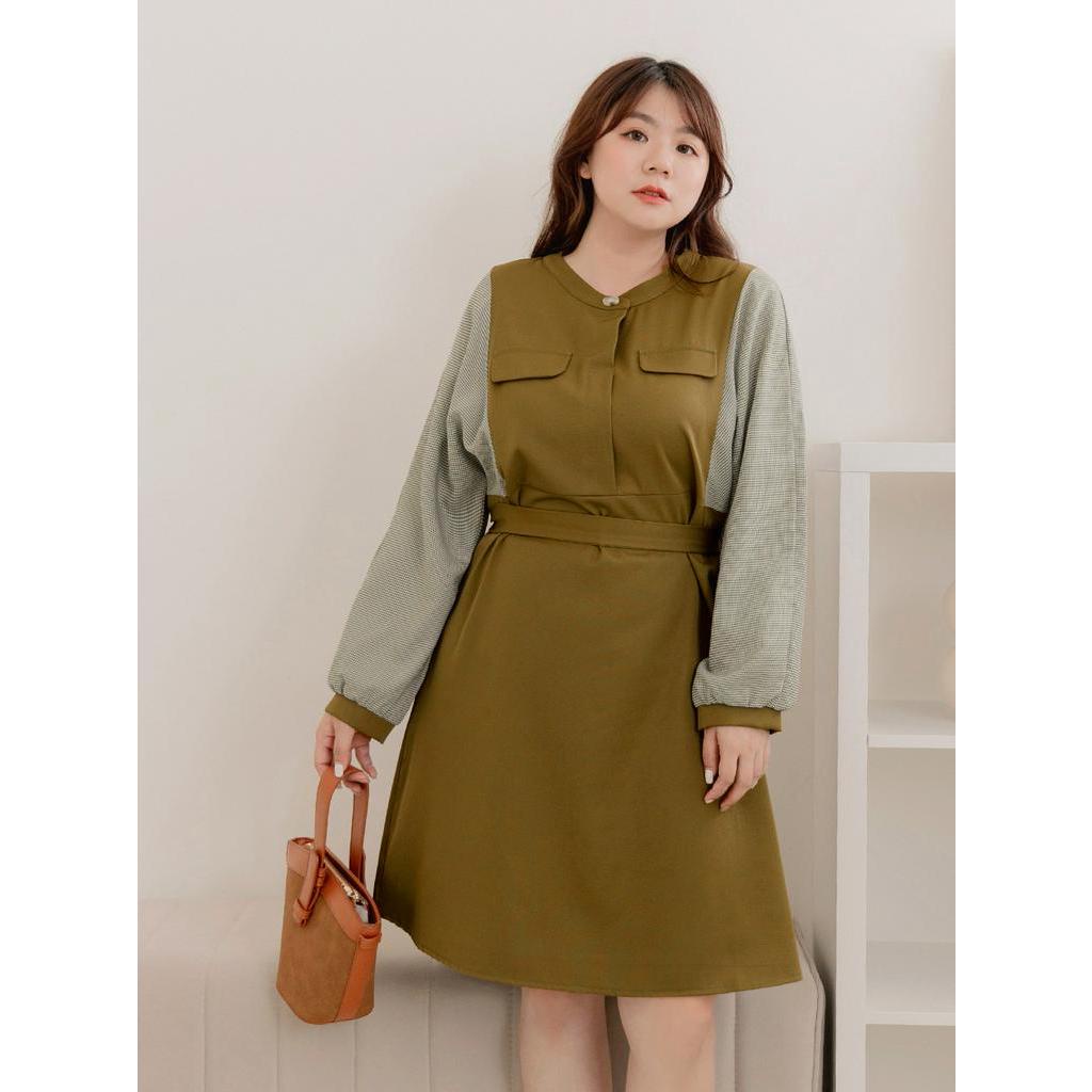 OB嚴選 雲朵自訂款-拼接雪紡開襟圓領洋裝(附綁帶) 《DA9522》大尺碼/現貨/女裝