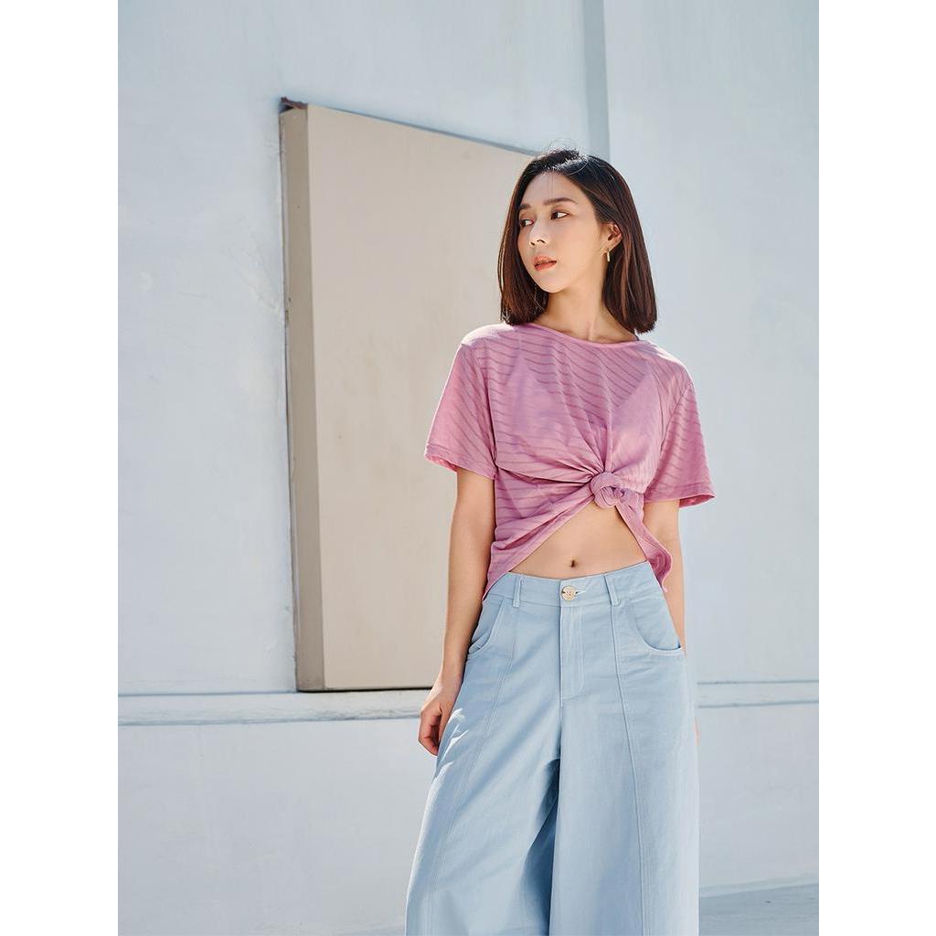 OB嚴選 透膚條紋扭結深V開衩美背上衣 《KS1030》大尺碼/現貨/運動