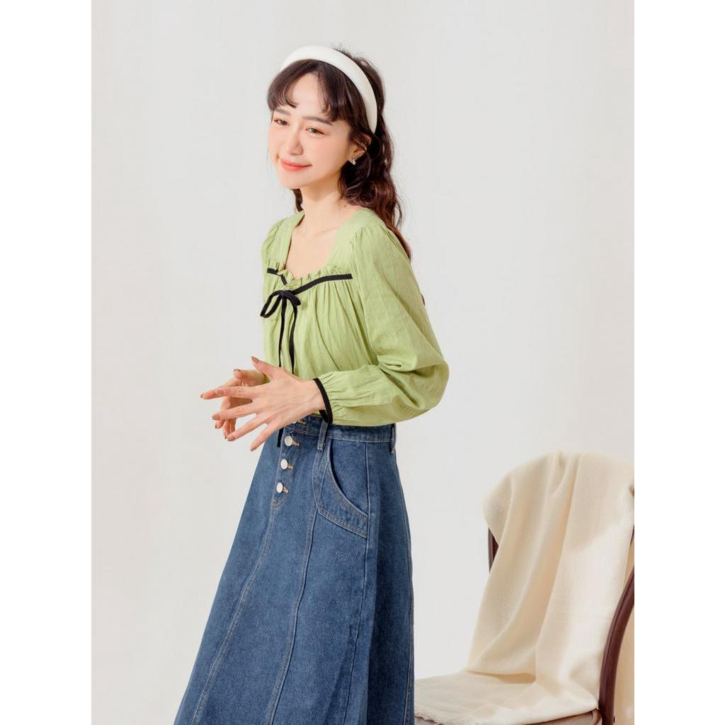 OB嚴選 甜美方領荷葉拼接高含棉長袖上衣 《AB16296》大尺碼/現貨/女裝
