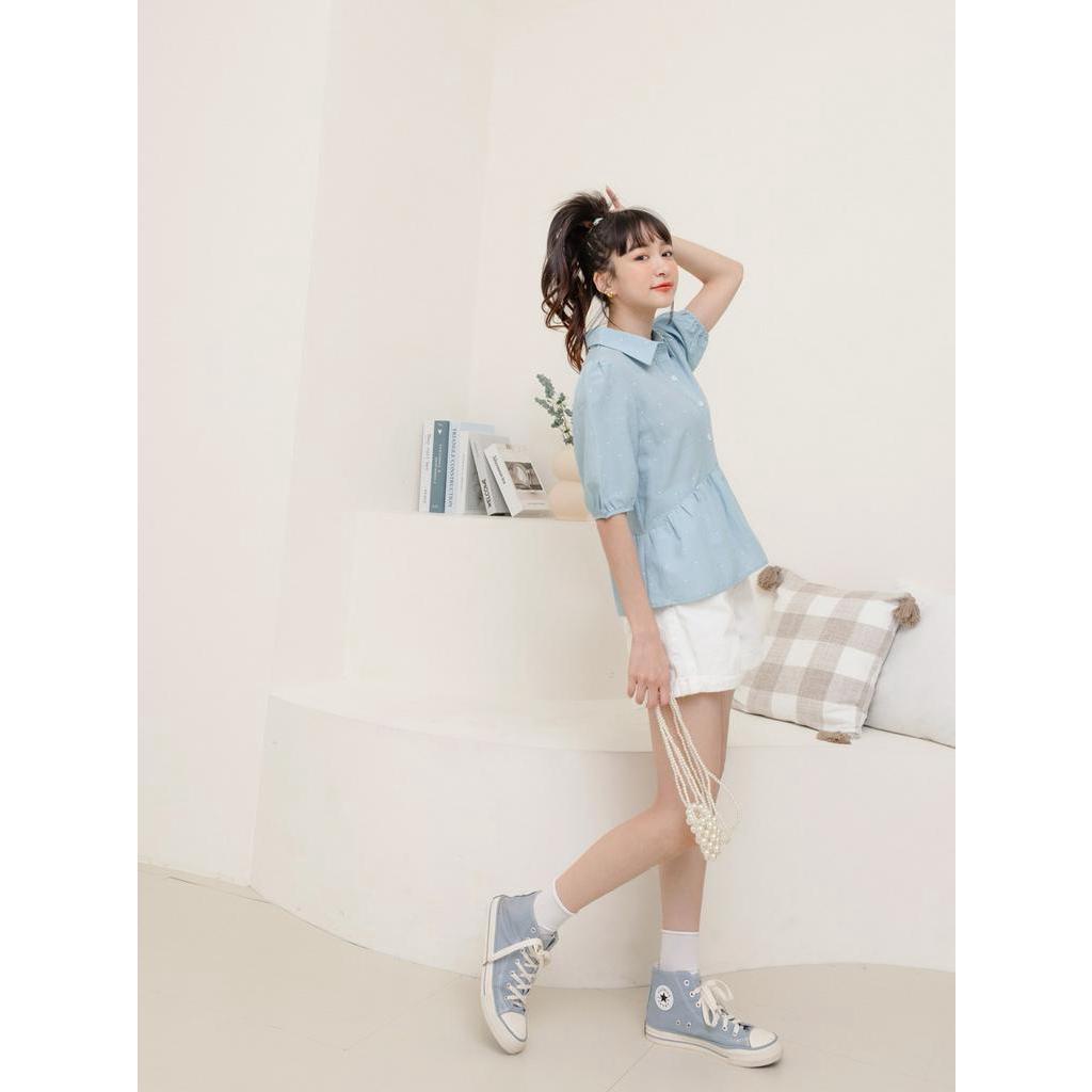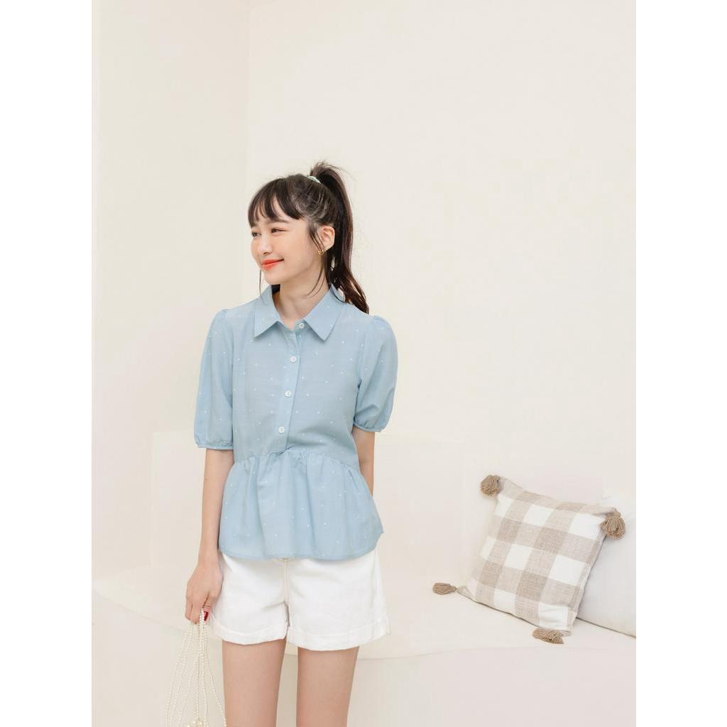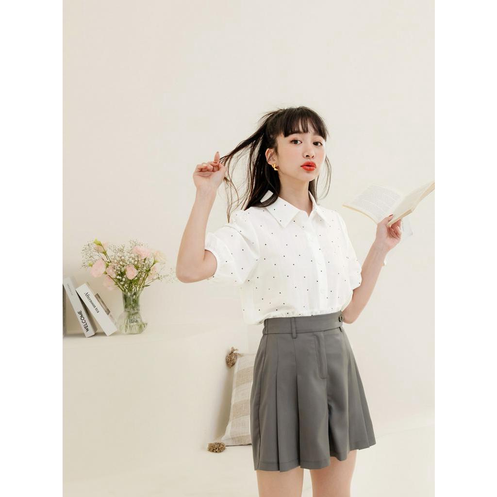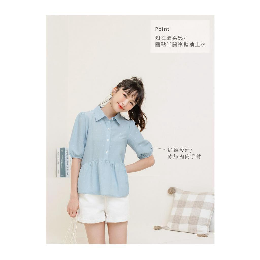 OB嚴選 襯衫領圓點半開襟收腰拋袖上衣 《AB18185》大尺碼/現貨/女裝