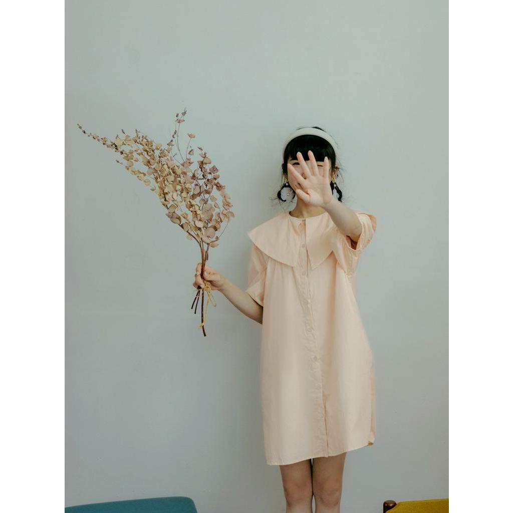 OB嚴選 純棉大翻領鬆緊澎袖襯衫洋裝 《DA9748》日系/大尺碼/現貨/女裝