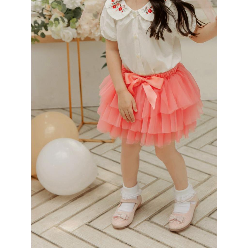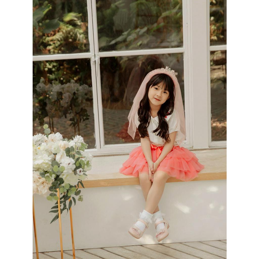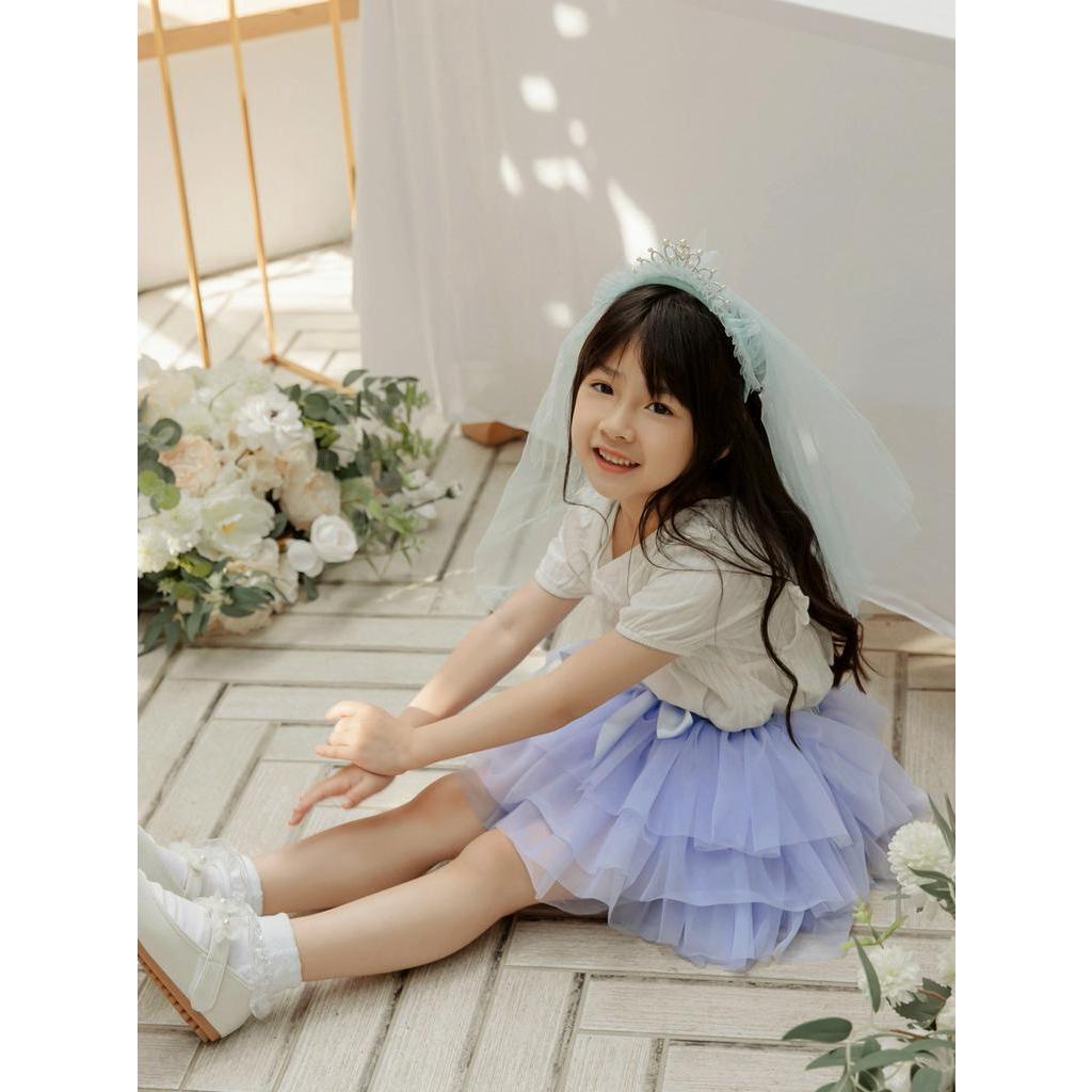 OB嚴選 蝴蝶結腰鬆緊蛋糕網紗花童蓬蓬裙 《QC0002》童裝/現貨