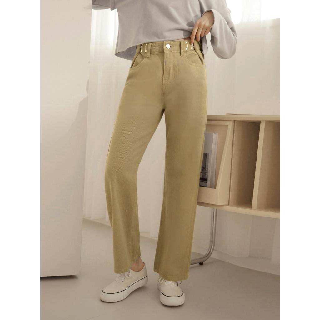 OB嚴選 時髦勾釦高腰含棉斜紋直筒九分長褲 《BA6945》大尺碼/現貨/女裝