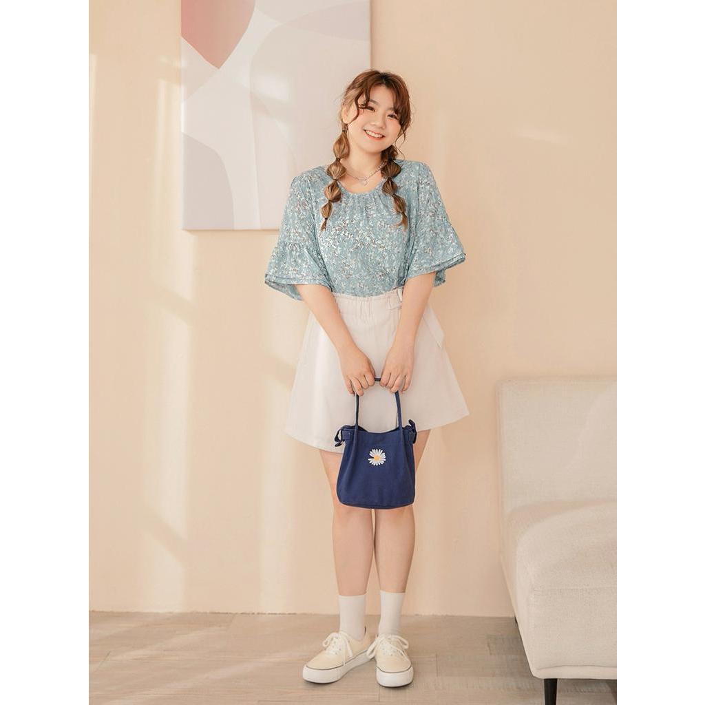 OB嚴選 雲朵自訂款-美背荷葉袖潑墨雪紡上衣 《AB17573》大尺碼/現貨/女裝