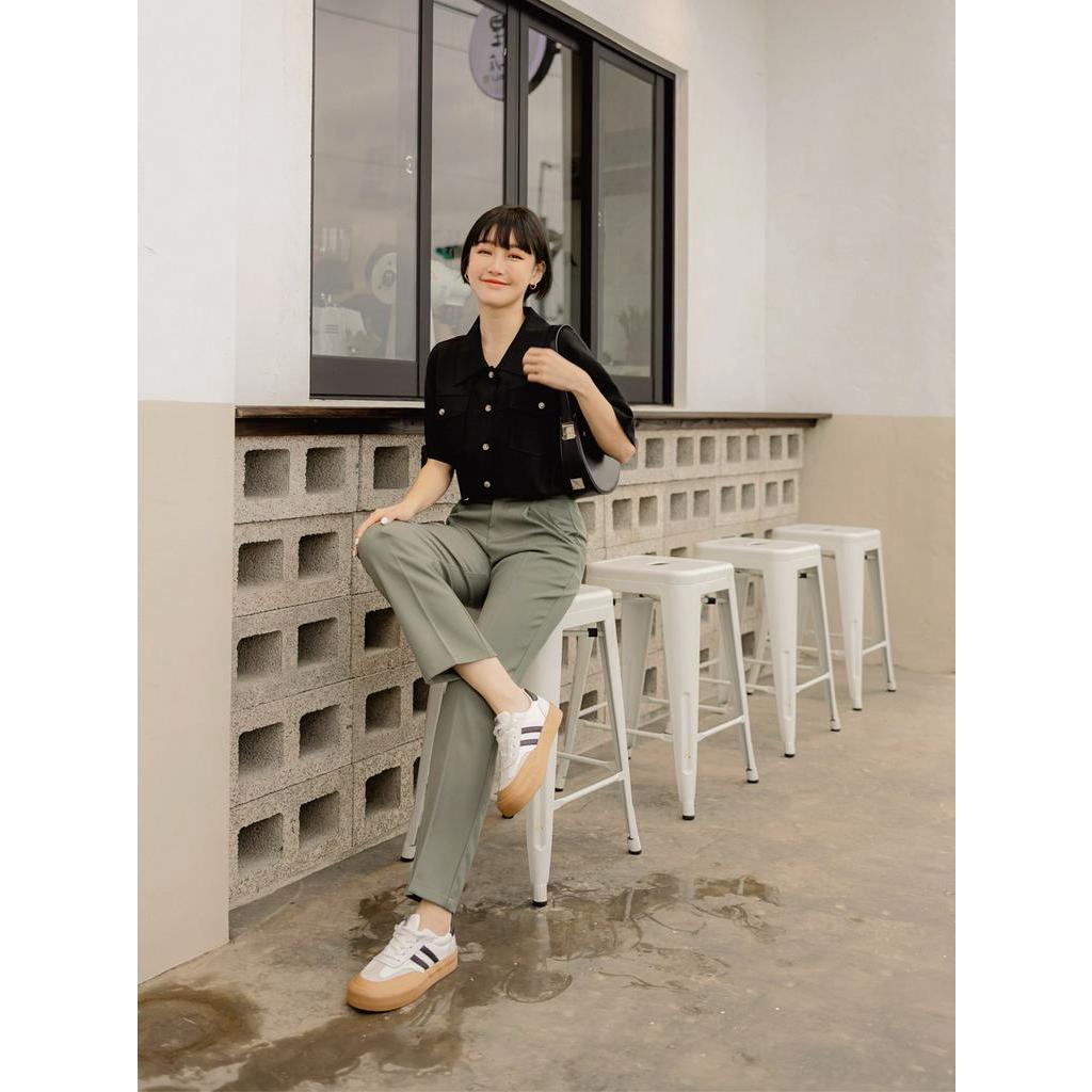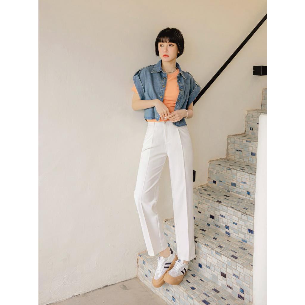 OB嚴選 棉質素色後鬆緊腰燙線西裝褲 《BA7114》大尺碼/現貨/女裝