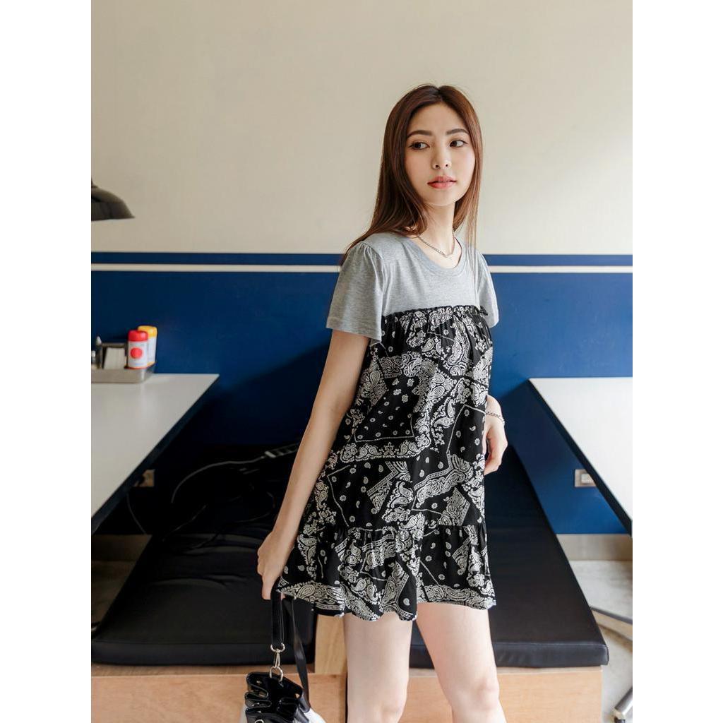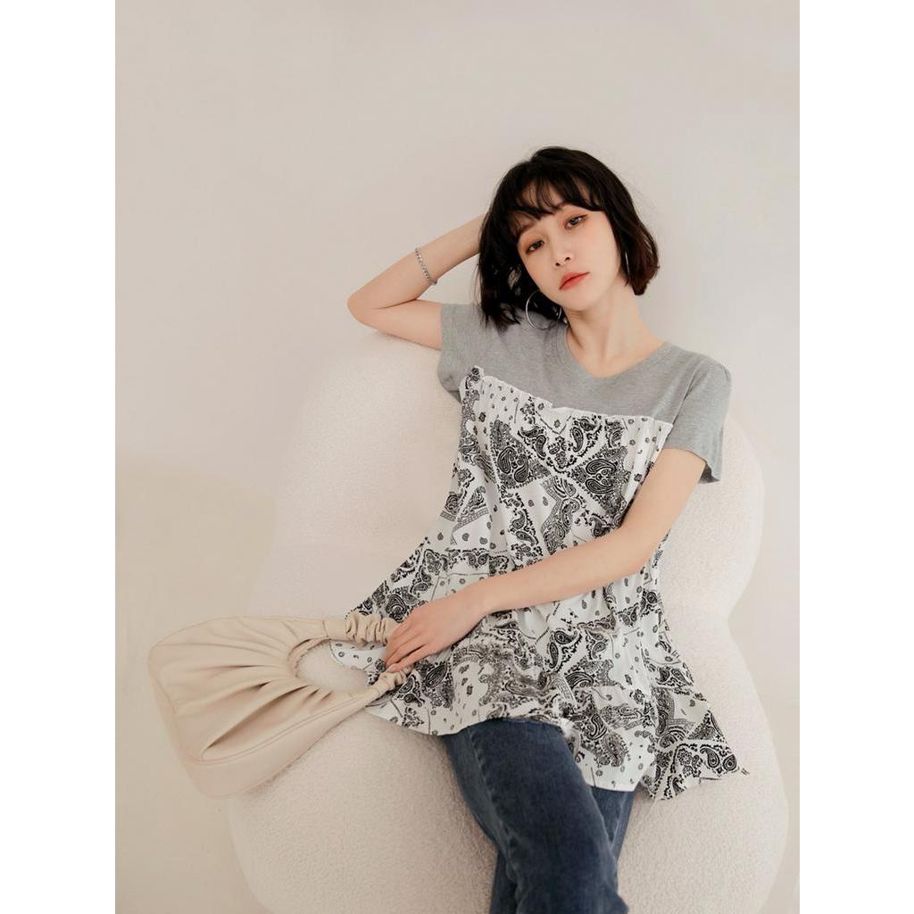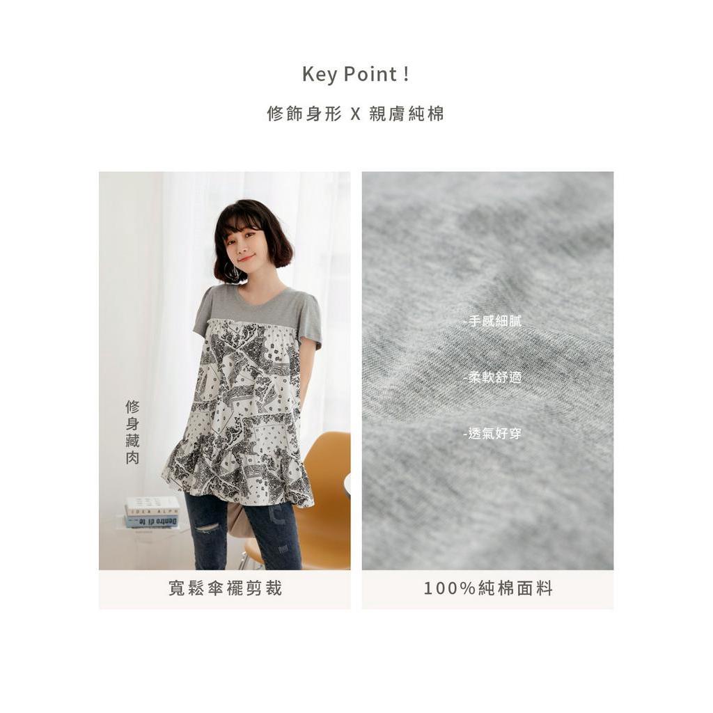 OB嚴選 高含棉拼接變形蟲印花長版傘襬上衣 《AB17114》大尺碼/現貨/女裝