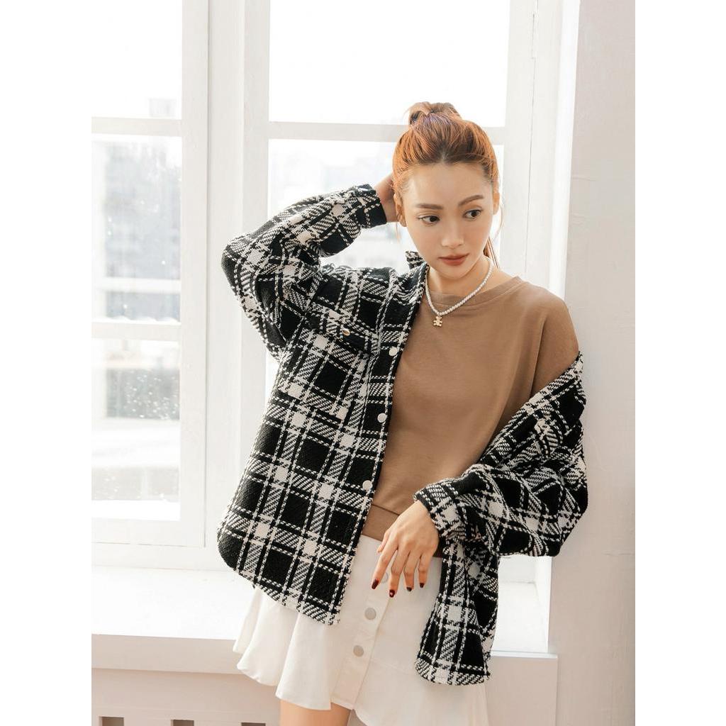 OB嚴選 時髦格紋雙口袋落肩長版襯衫外套 《EA3449》大尺碼/現貨/女裝