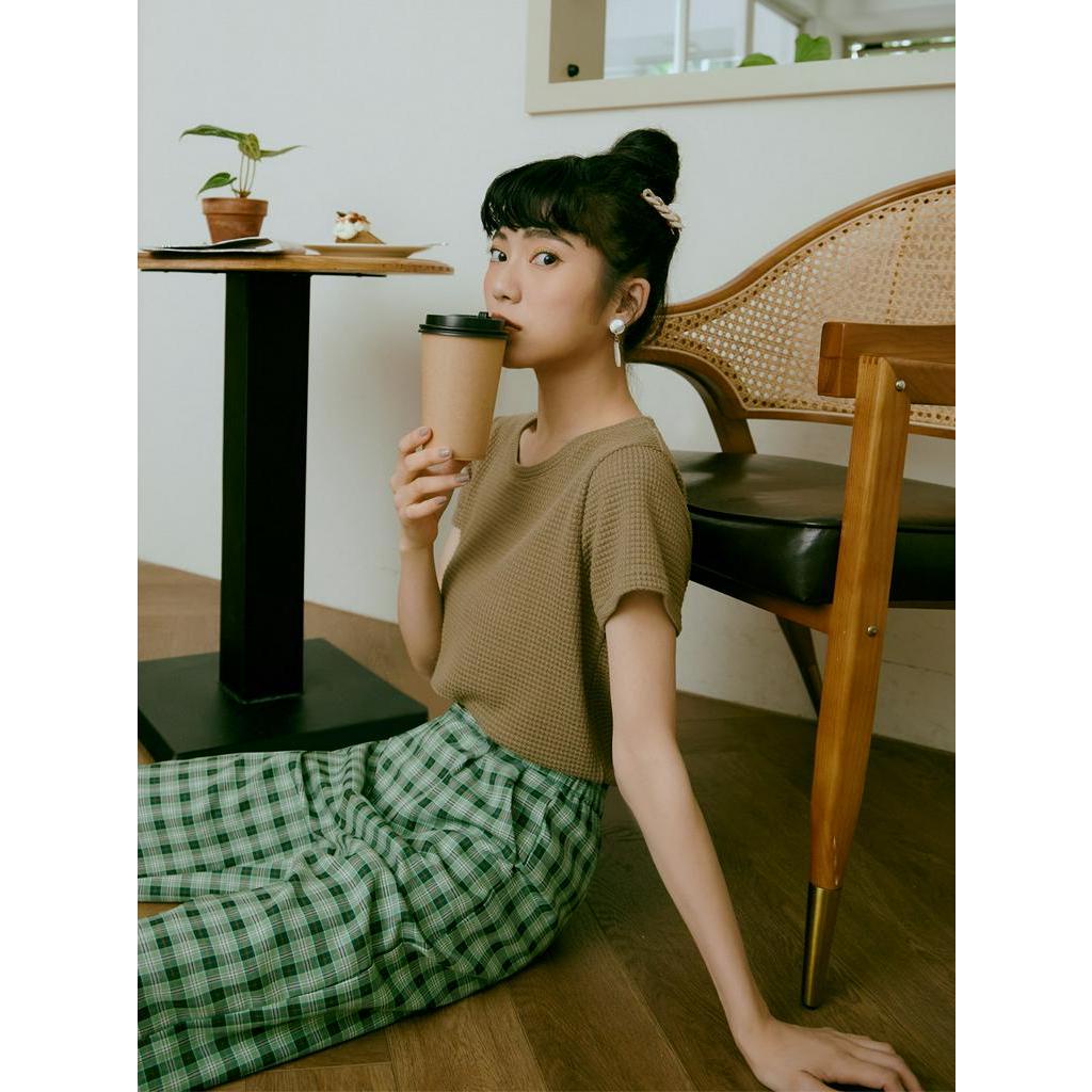 OB嚴選 立體鬆餅格彈力圓領上衣 《AB18603》日系/大尺碼/現貨/女裝