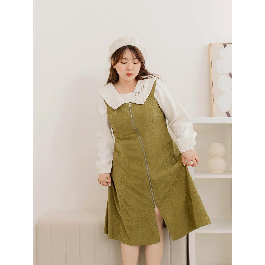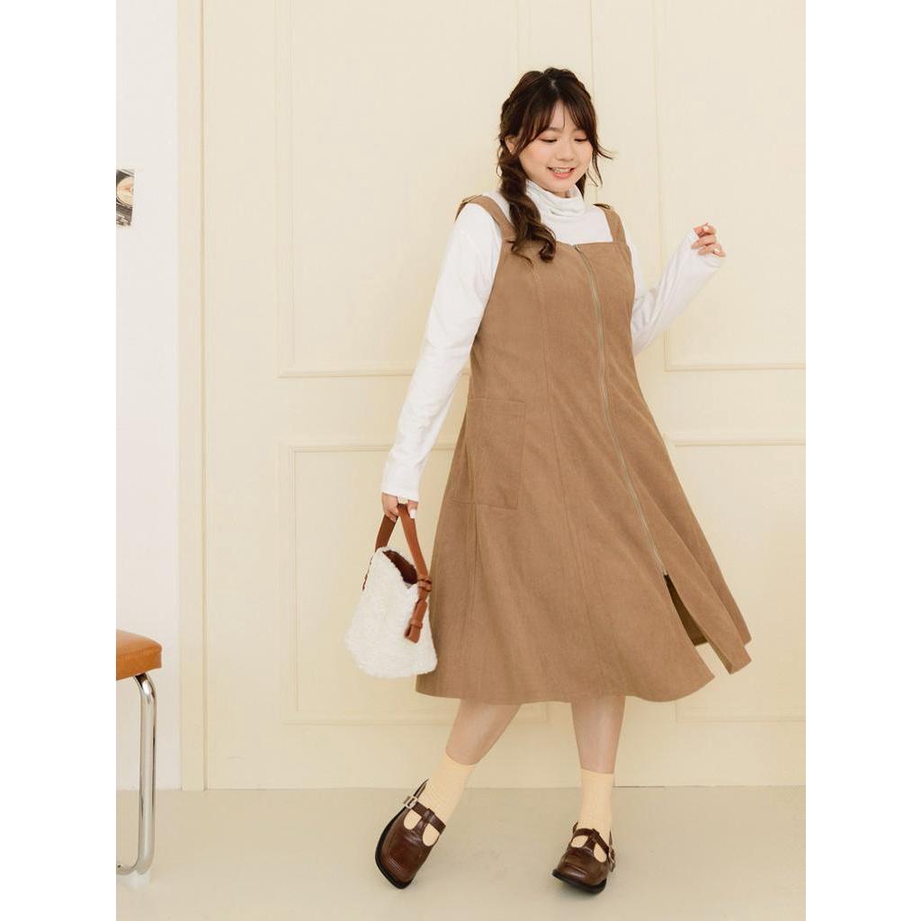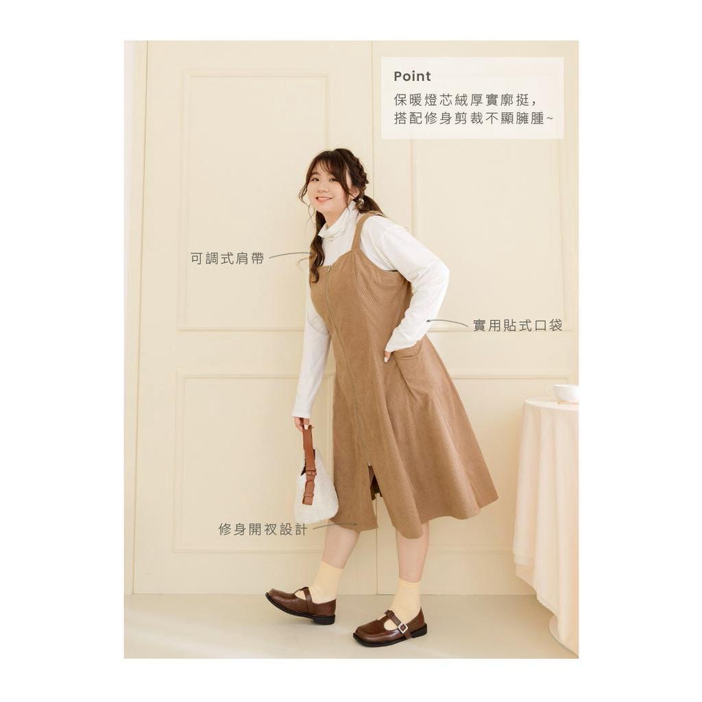 OB嚴選 雲朵自訂款-保暖燈芯絨拉鍊開衩吊帶洋裝 《DA9560》大尺碼/現貨/女裝