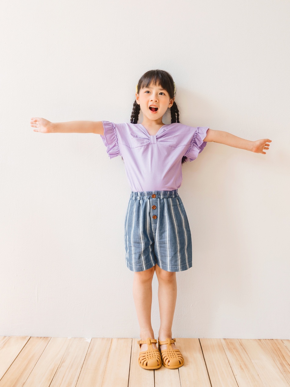 OB嚴選 純棉蝴蝶結造型領前後兩穿荷葉袖上衣 《QA1703》童裝/現貨
