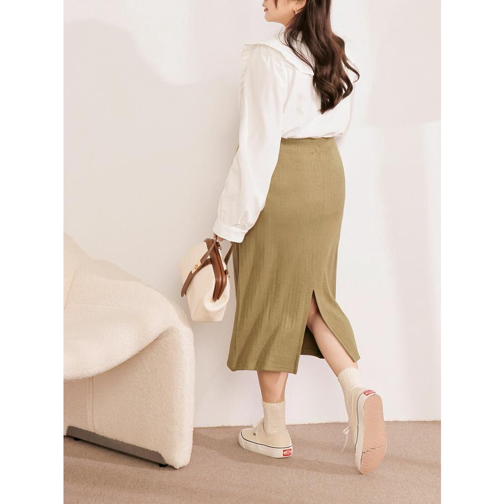 OB嚴選 雲朵自訂款-條紋針織鬆緊腰後開衩長裙 《CA2682》大尺碼/現貨/女裝