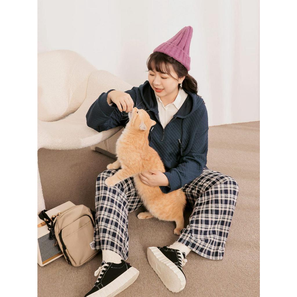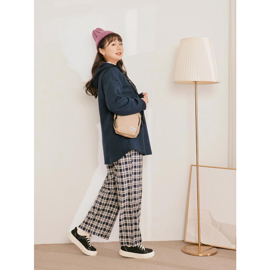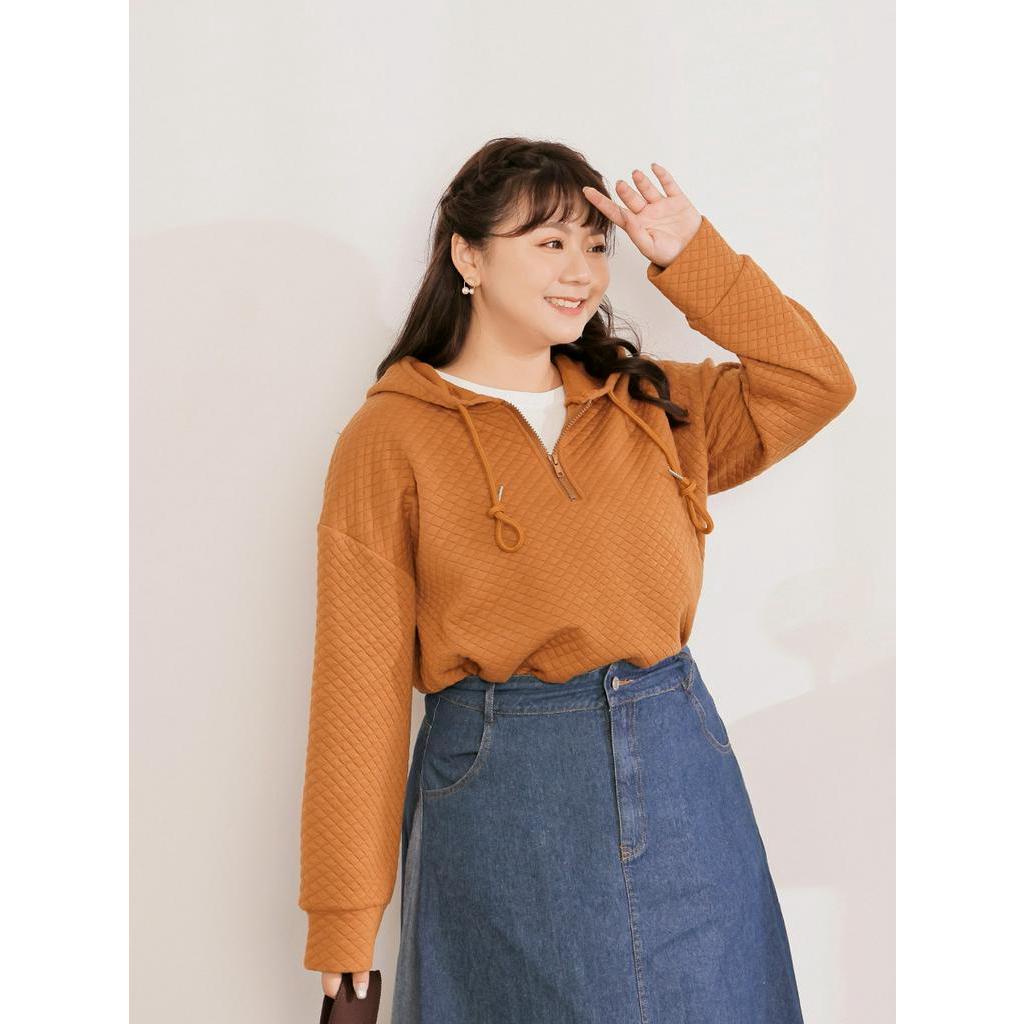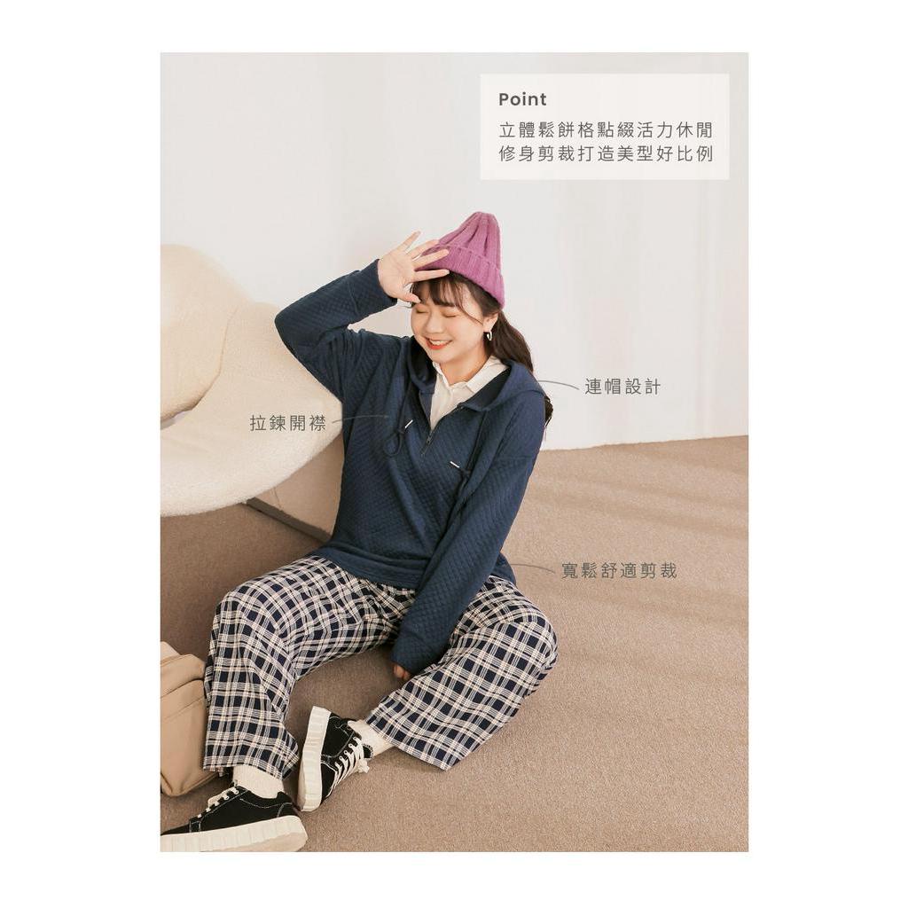 OB嚴選 雲朵自訂款-純色鬆餅格半開襟連帽上衣 《AB17918》大尺碼/現貨/女裝