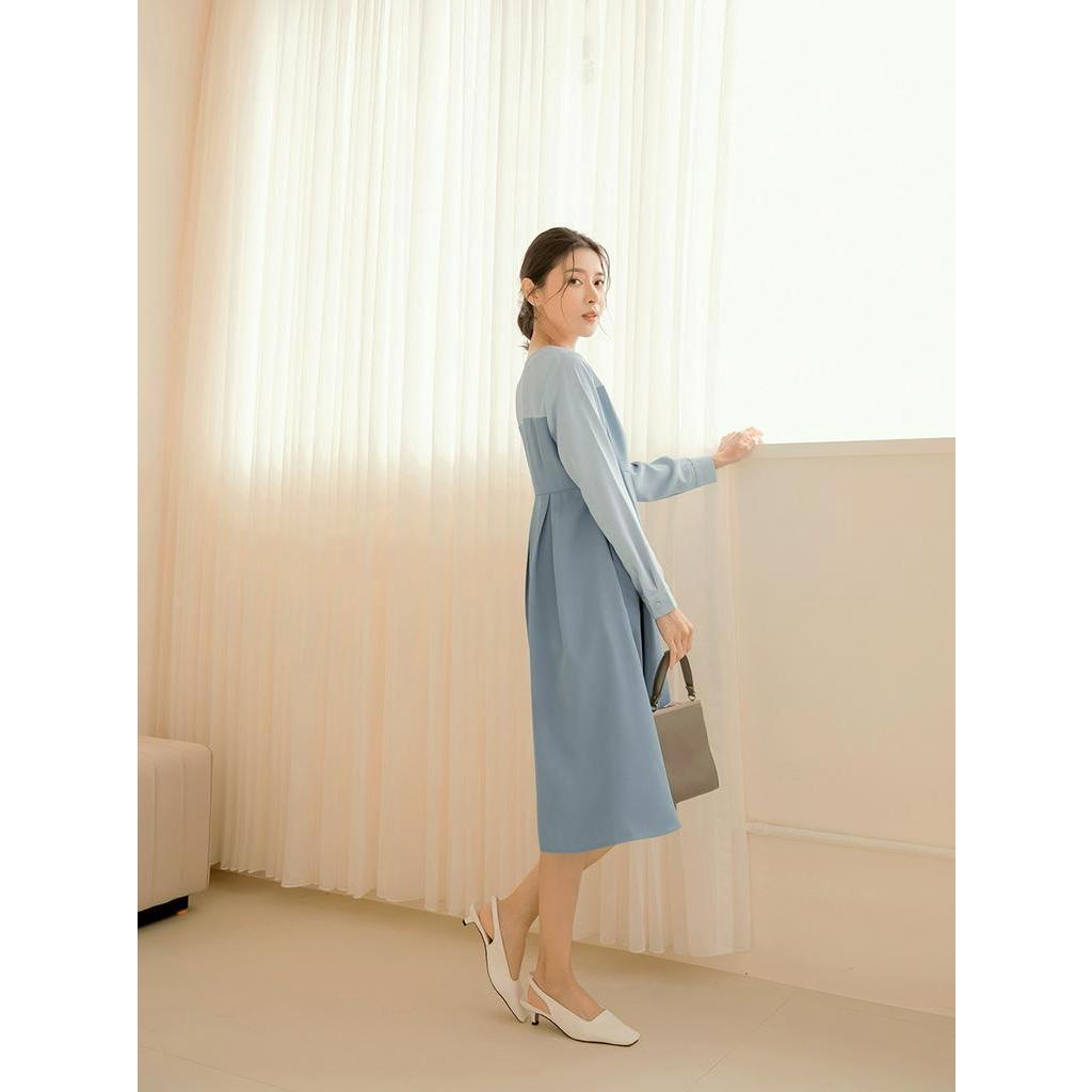 OB嚴選 小V臉.V領配色拼接雪紡收腰傘襬洋裝 《DA9472》大尺碼/現貨/女裝