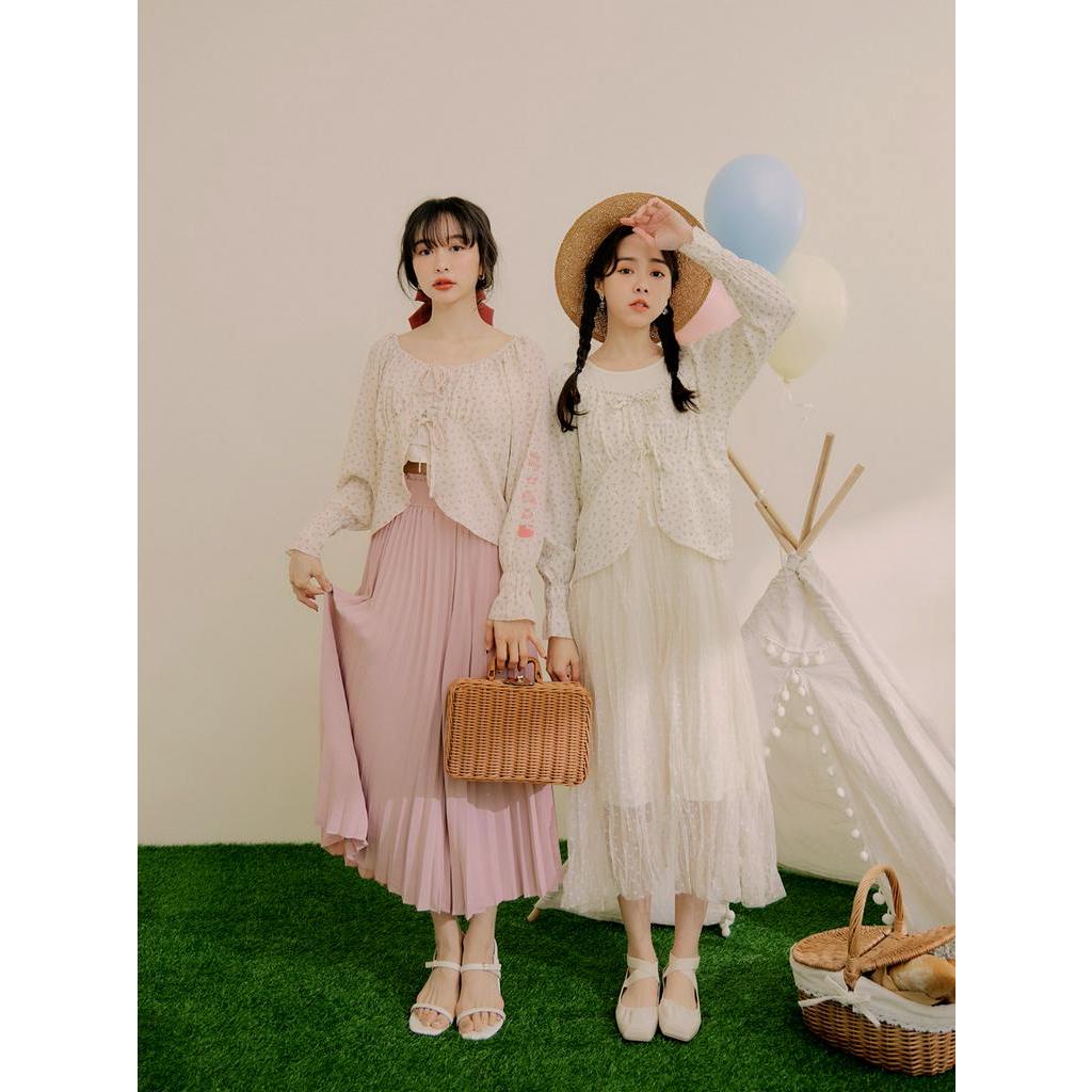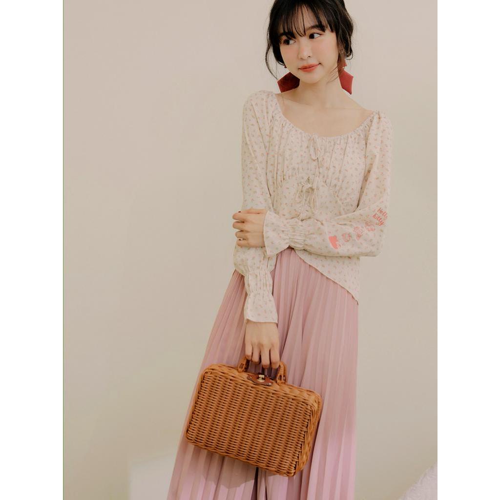 OB嚴選 KITTY 野餐系列.雪紡碎花綁帶長袖上衣 《KB1465》現貨/大尺碼/女裝
