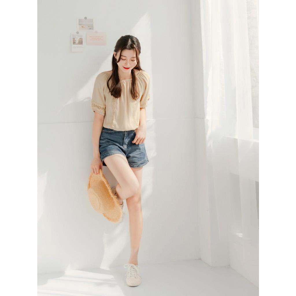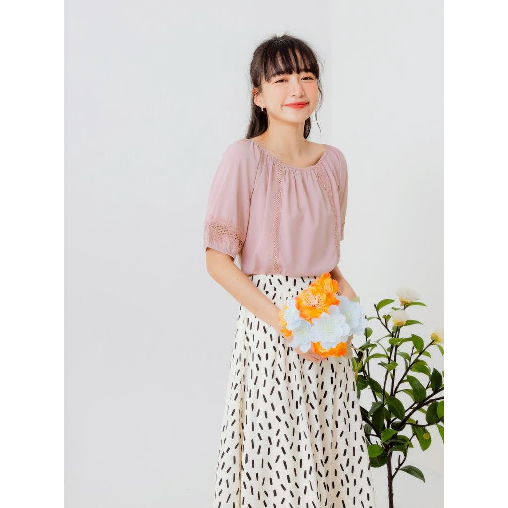 OB嚴選 涼感.舒涼雪紡圓領一字領蕾絲上衣《AB17445》大尺碼/現貨/女裝