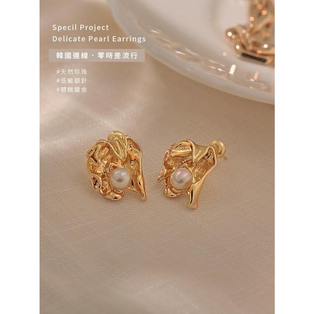 OB嚴選 韓國選品.波紋造型天然珍珠925銀針耳環 《XA270》現貨/飾品/韓系