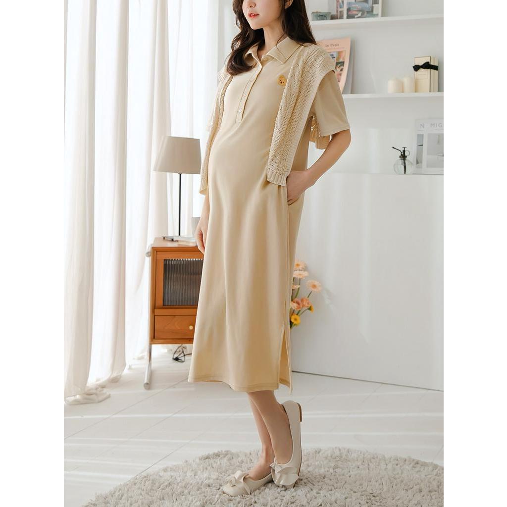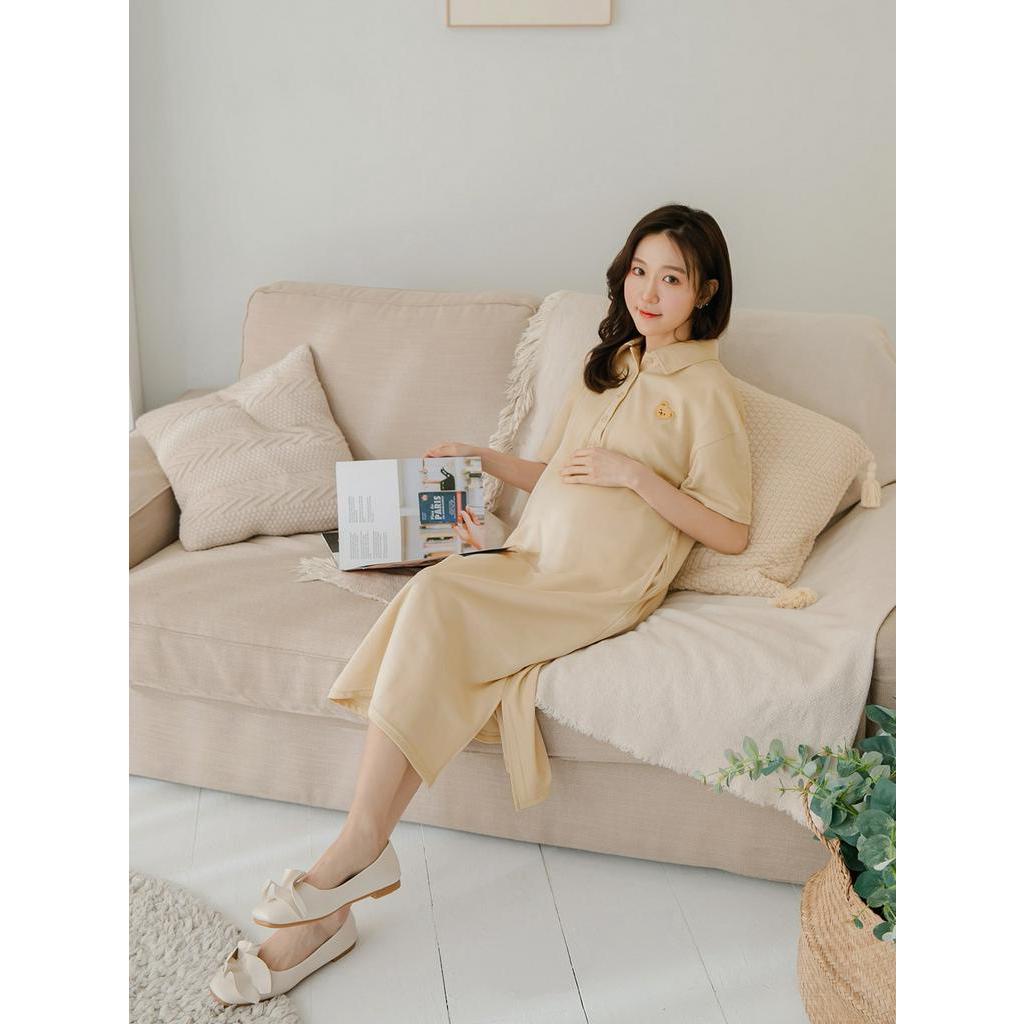OB嚴選 美國棉抗菌。台灣製造銀離子小熊刺繡排釦襯衫孕婦洋裝 《MA0503》現貨/大尺碼
