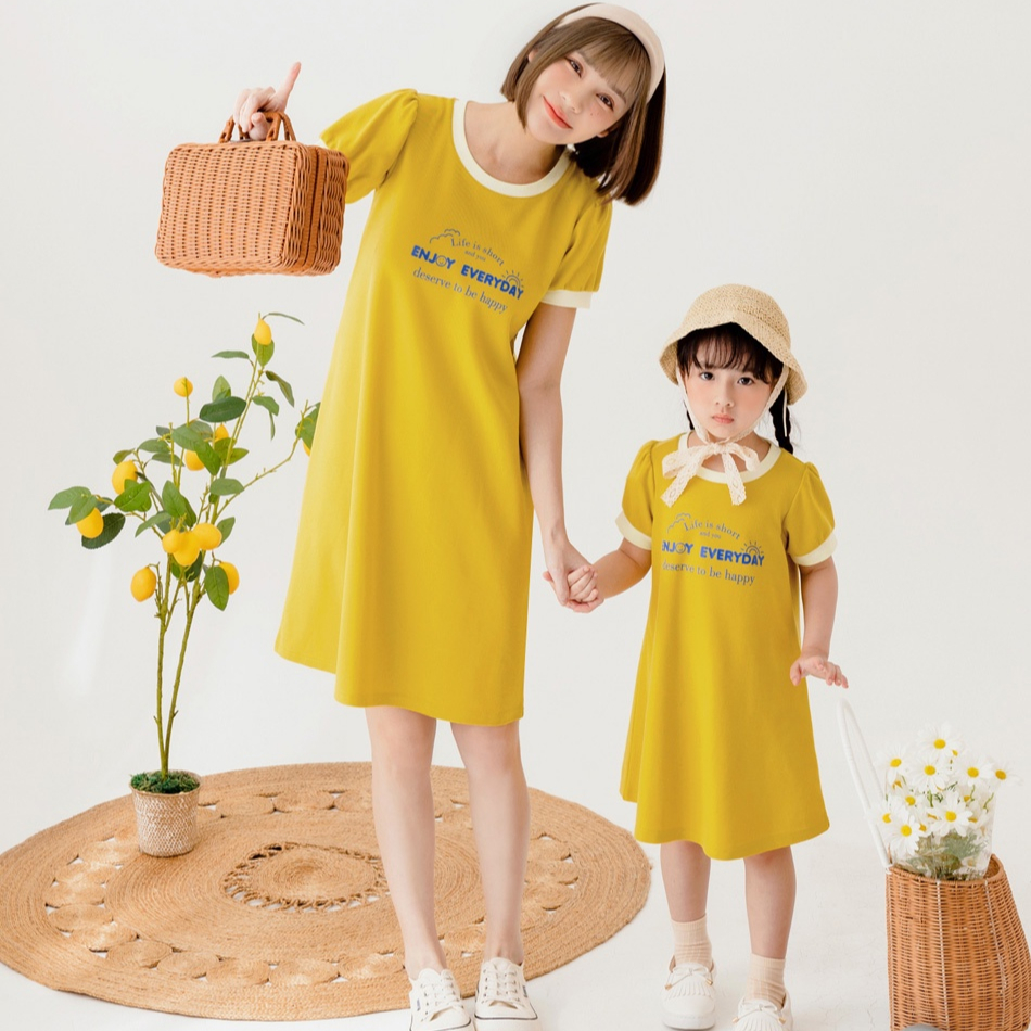 OB嚴選 純棉撞色字母印花公主澎袖洋裝-親子款(童) 《QA1671》童裝/現貨