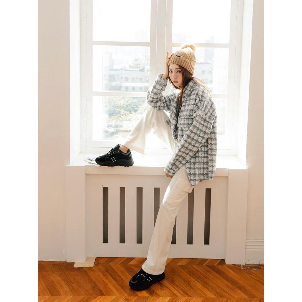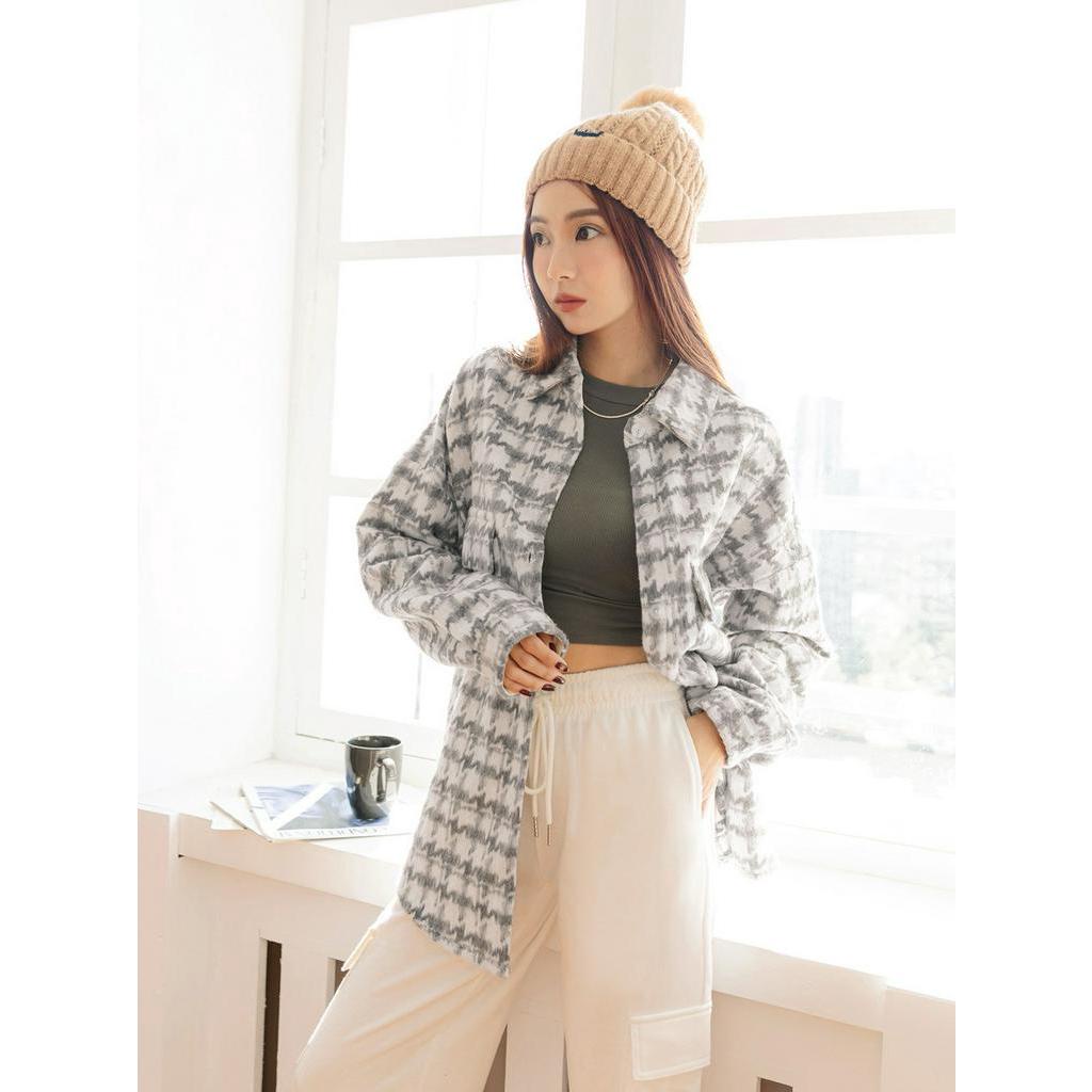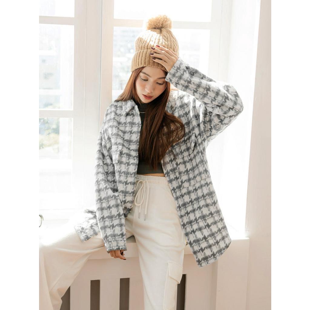 OB嚴選 長版配色千鳥格紋毛料襯衫外套 《AB18006》大尺碼/現貨/女裝