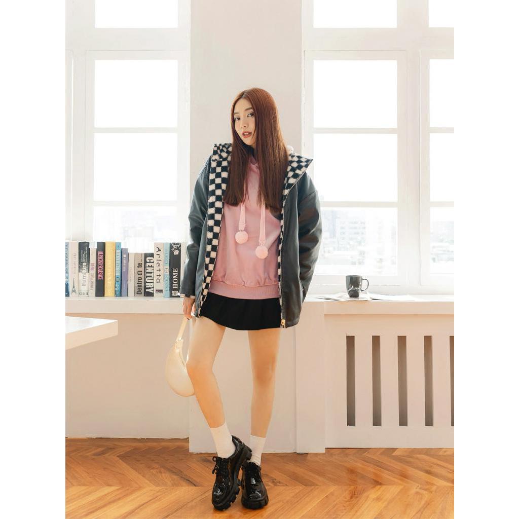 OB嚴選 光澤感純色保暖銀狐絨球球連帽上衣 《AB17929》大尺碼/現貨/女裝