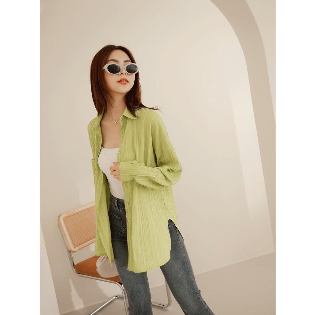 OB嚴選 立體紋理弧形下襬寬鬆長版襯衫 《AB17847》現貨/女裝/時髦