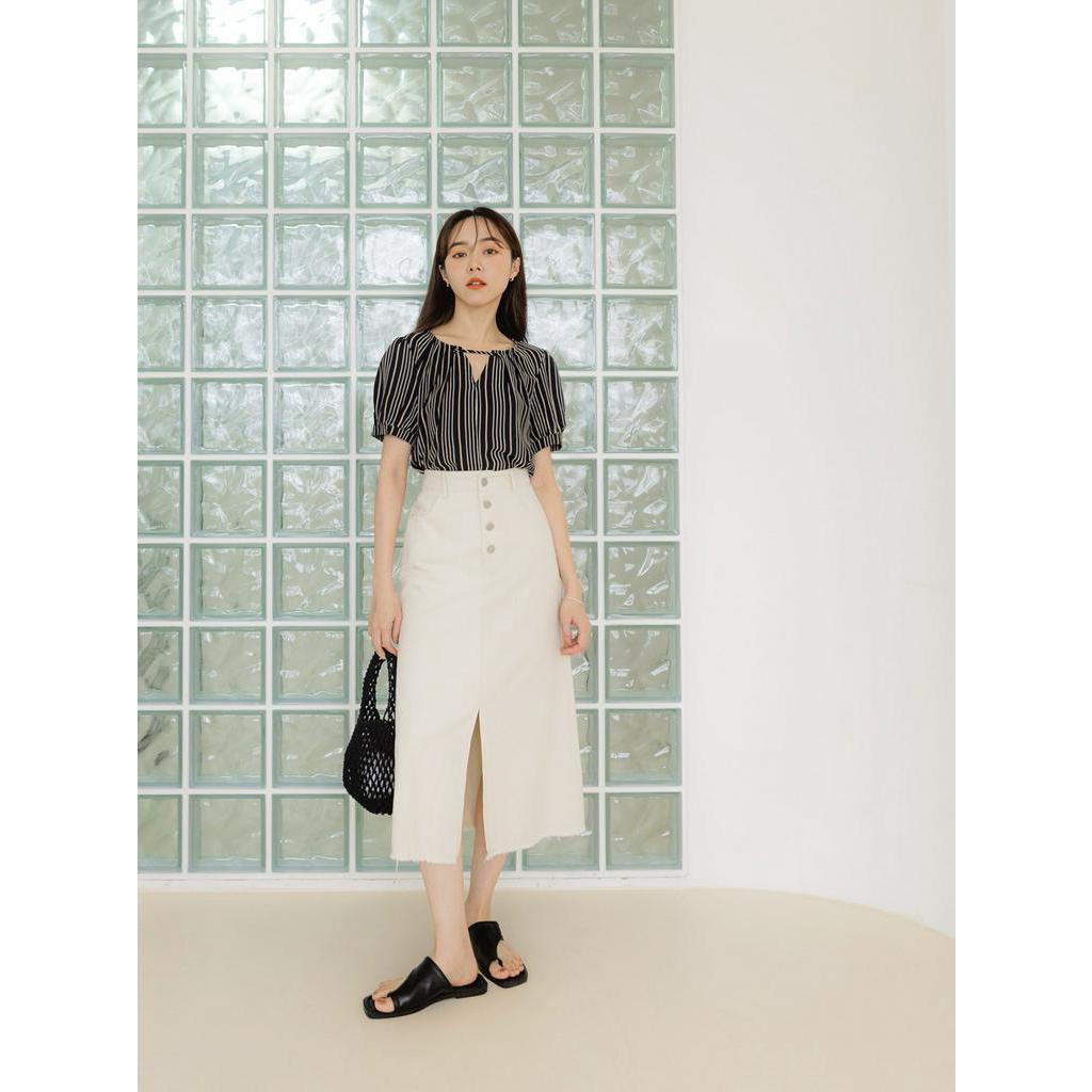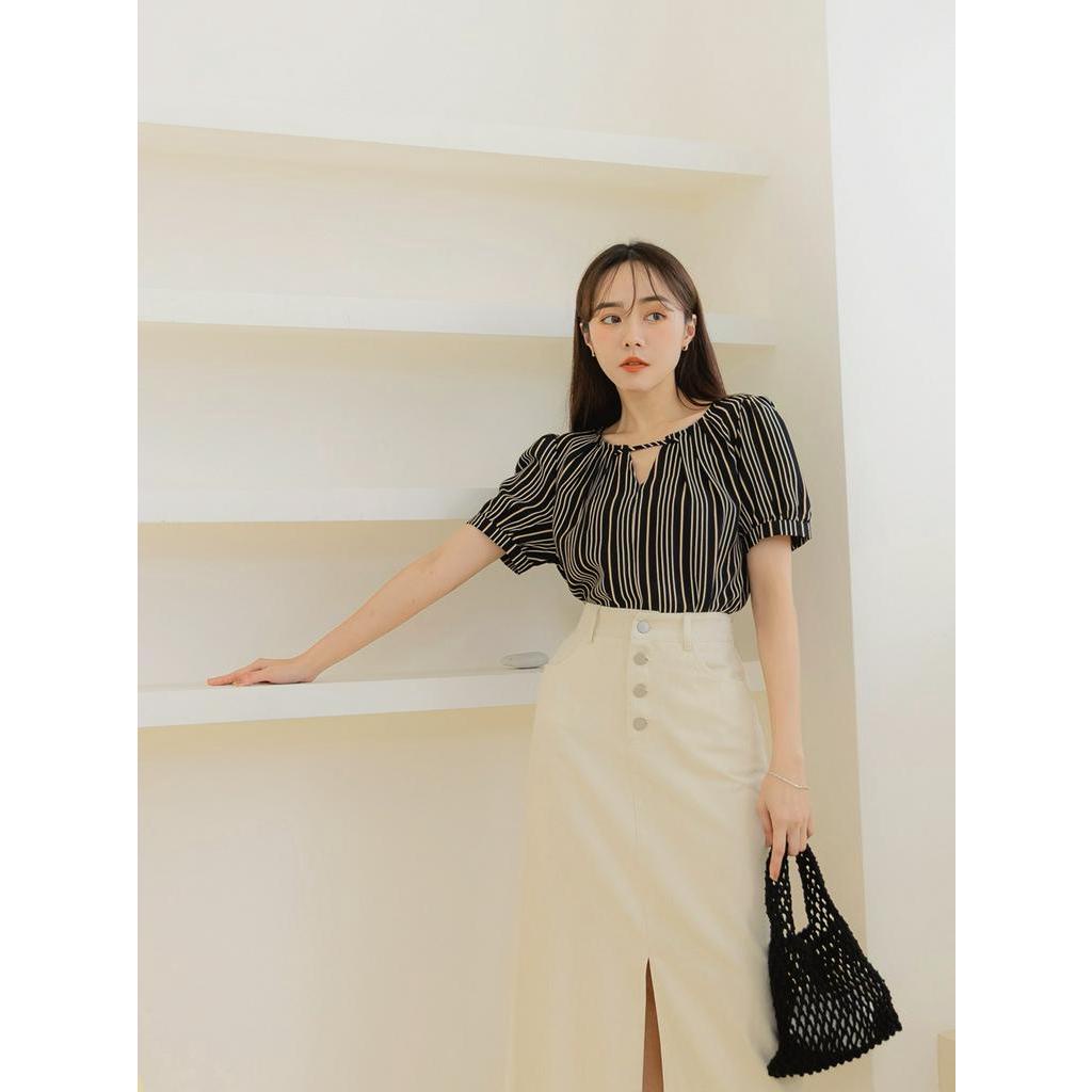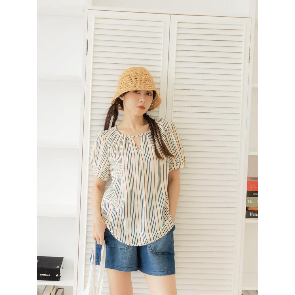 OB嚴選 質感細條紋小V領拋袖上衣 《AB18306》大尺碼/現貨/女裝