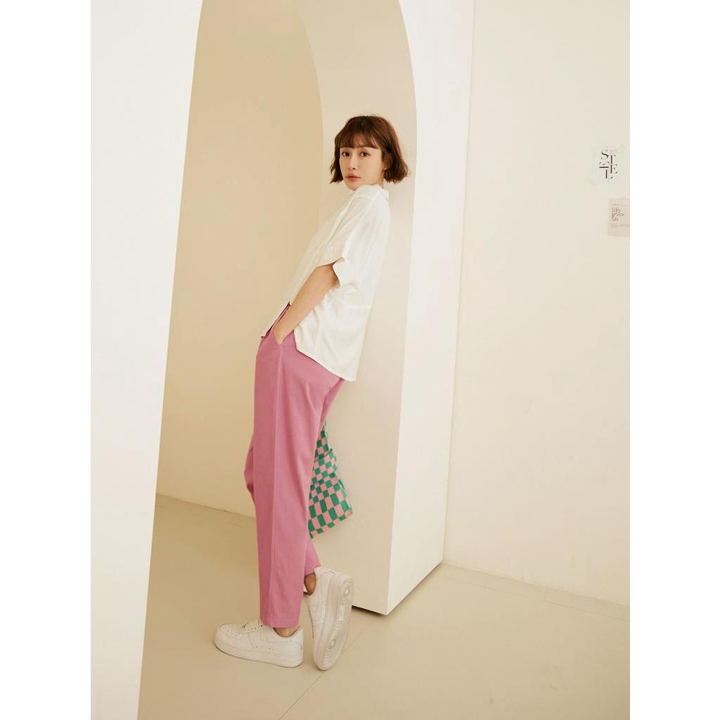 OB嚴選 純棉素色後鬆緊打褶直筒褲 《BA7244》大尺碼/現貨/女裝