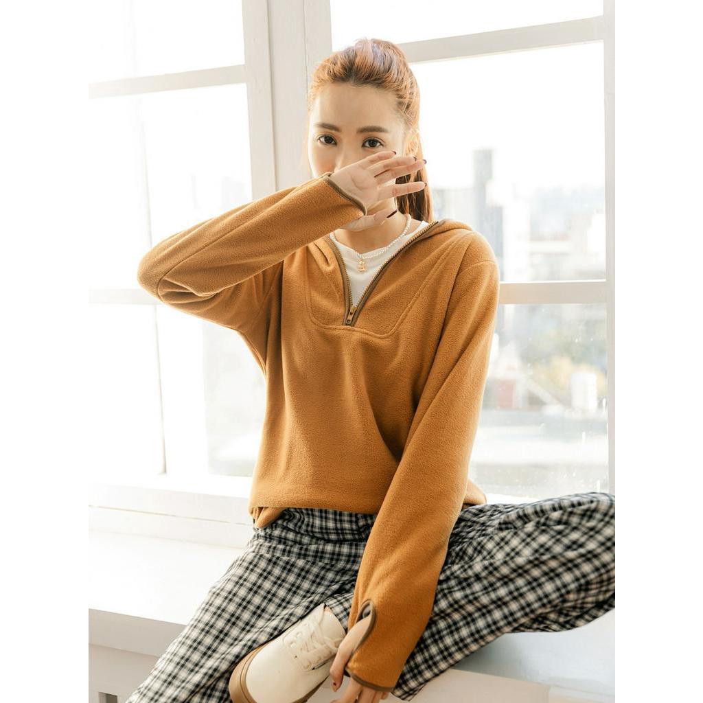 OB嚴選 保暖純色搖粒絨半開襟連帽上衣 《AB17943》大尺碼/現貨/女裝