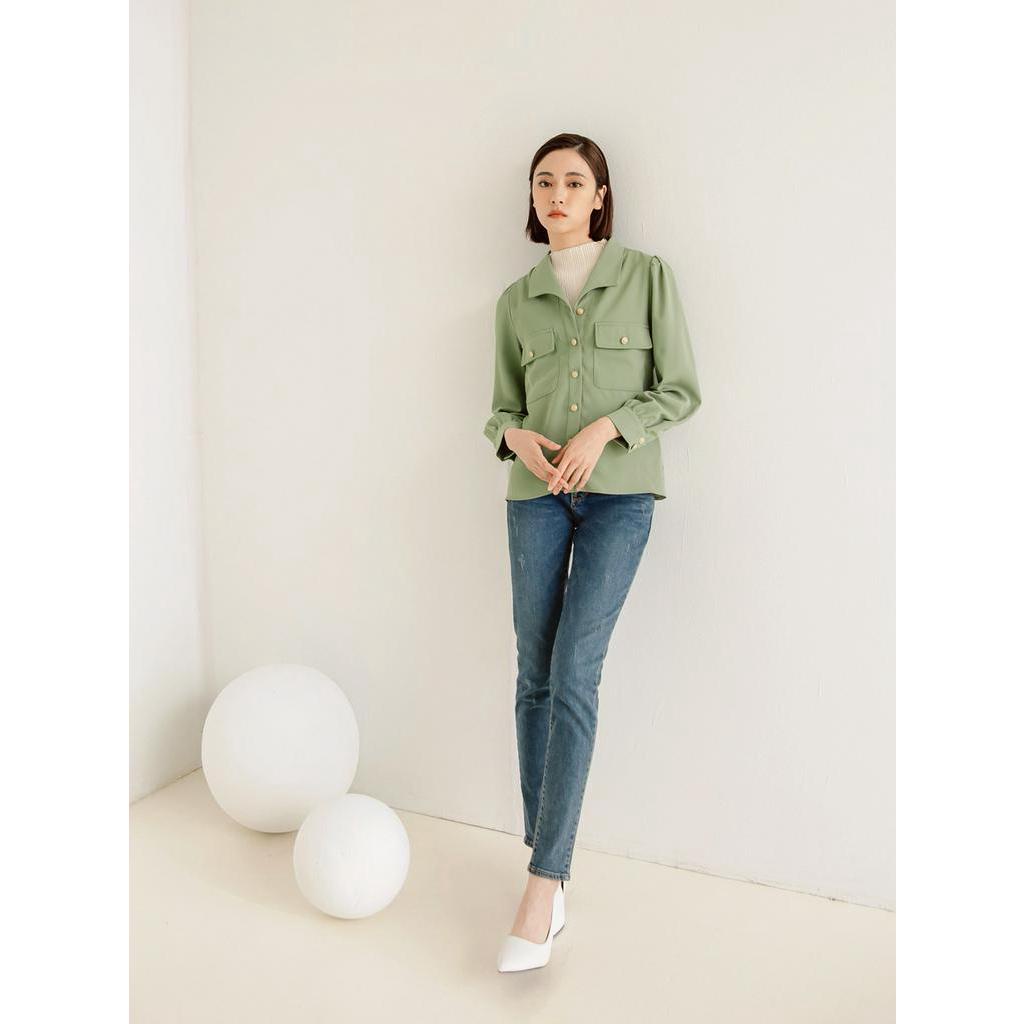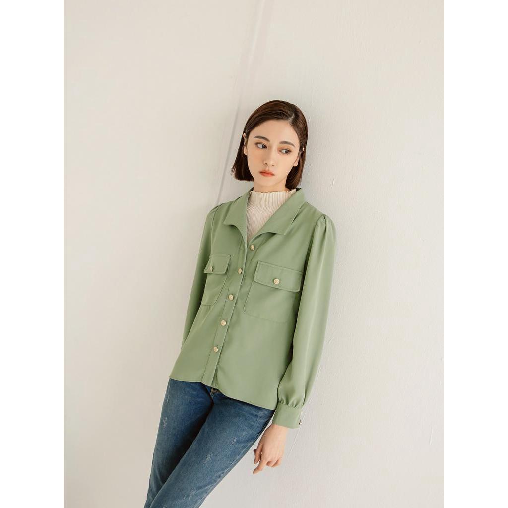 OB嚴選 小V臉.V領金釦開襟質感長袖上衣/襯衫 《AB17632》大尺碼/現貨/女裝