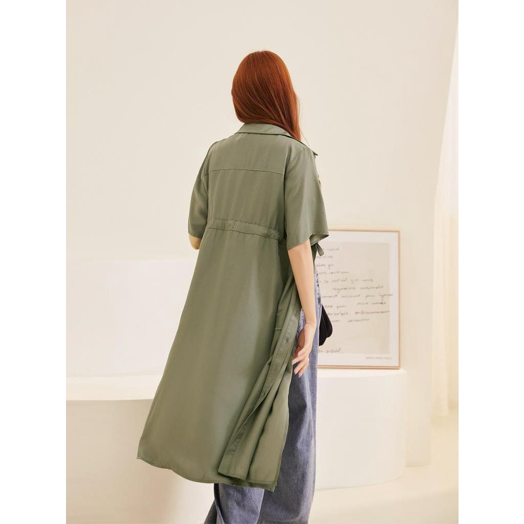 OB嚴選 素色襯衫領排釦收腰綁帶短袖長外罩洋裝 《DA9586》大尺碼/現貨/女裝