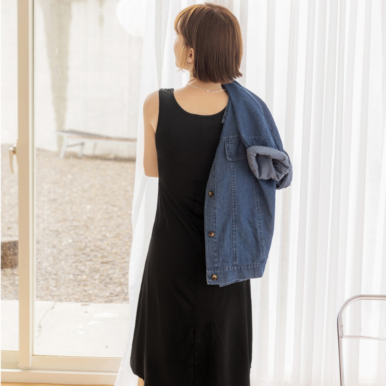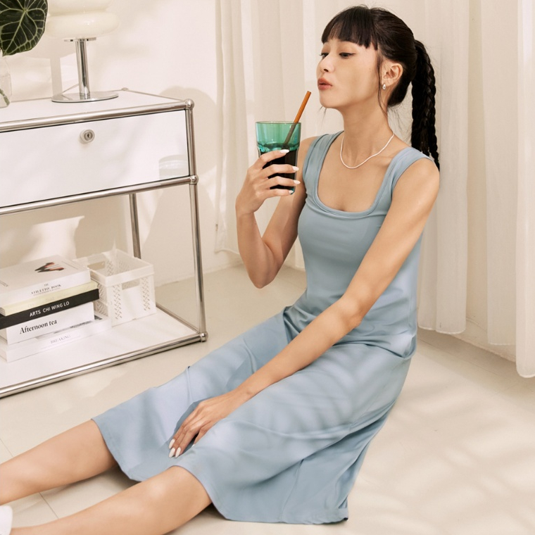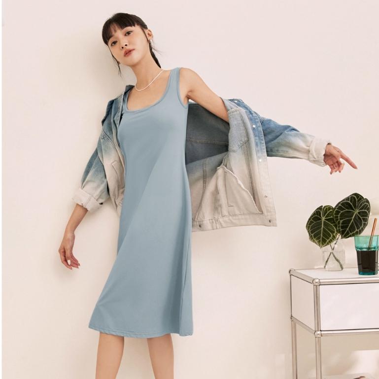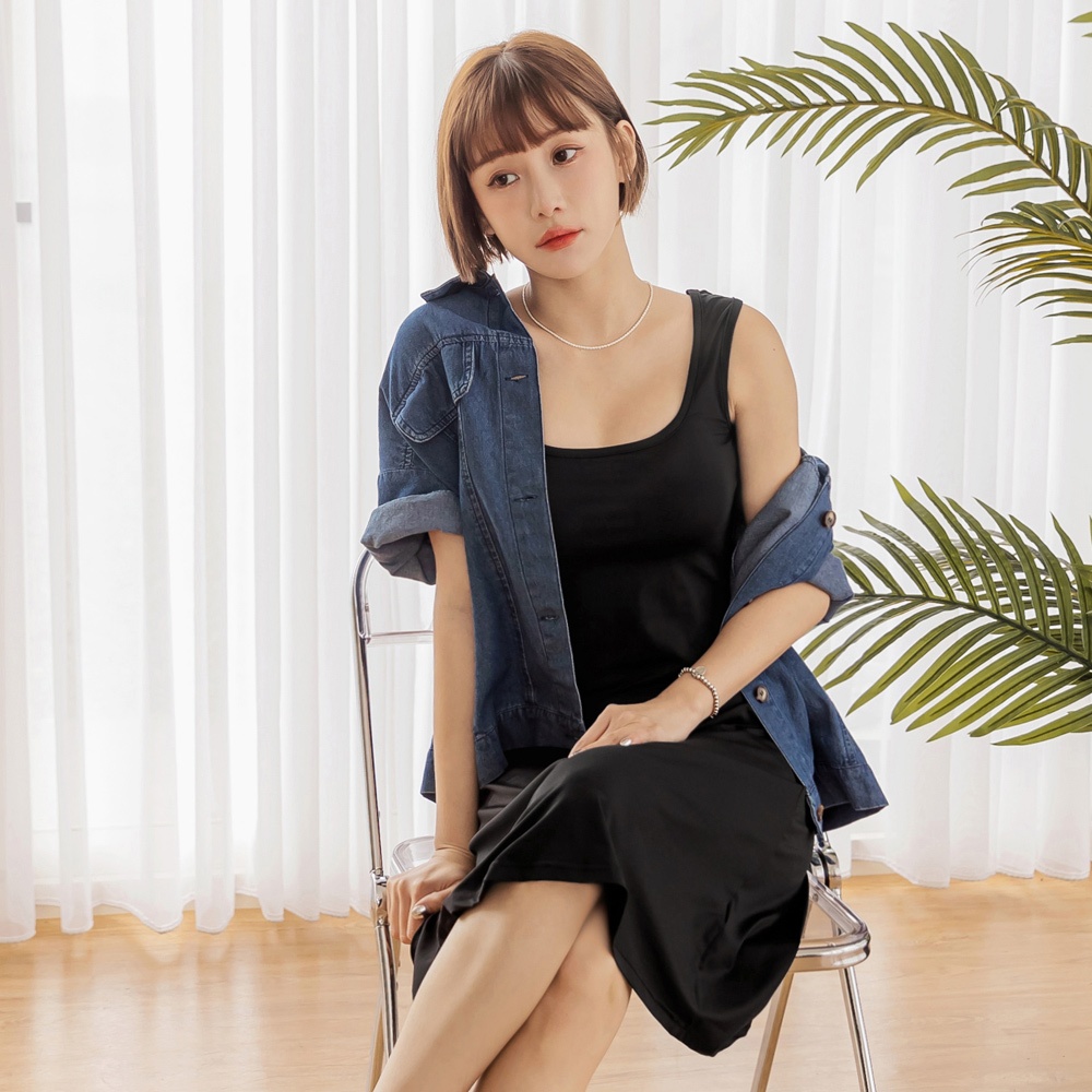 OB嚴選 涼感.冰牛奶絲大U領BRA無袖長洋裝 《DA9713》大尺碼/現貨/女裝