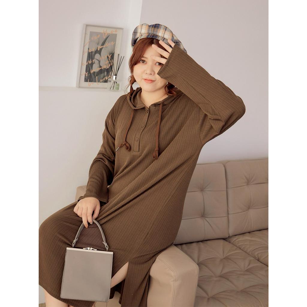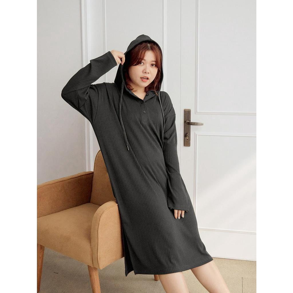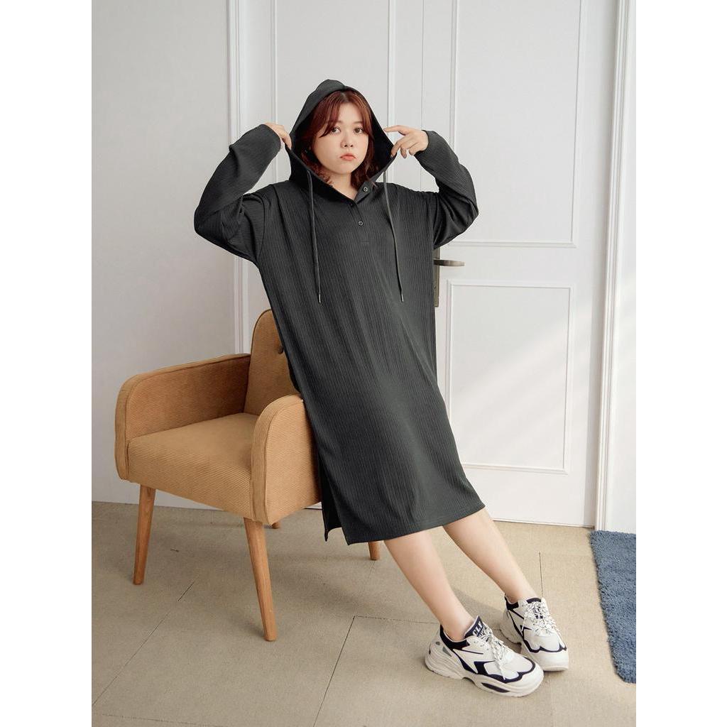 OB嚴選 雲朵自訂款-彈性坑條排釦開衩連帽洋裝 《DA9470》大尺碼/現貨/女裝